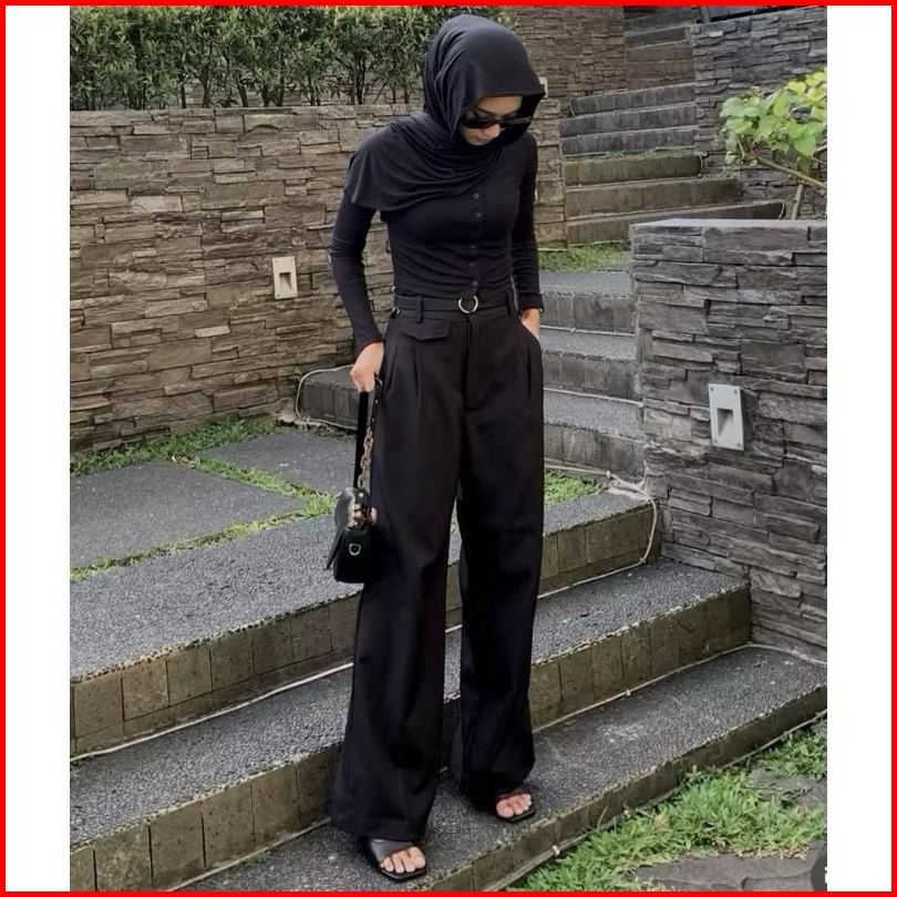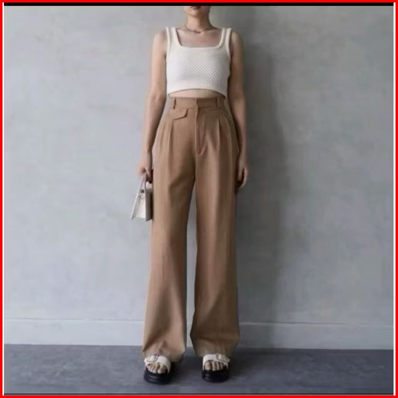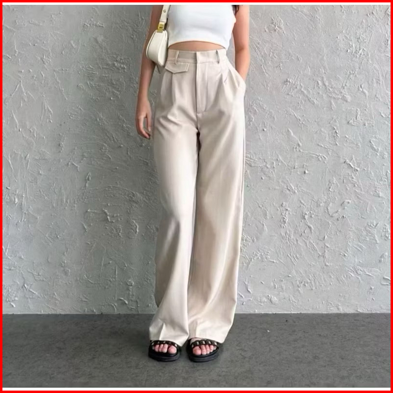 Oro Pants Highwaist Loose Anti Kusut Kerja - Nyaman Dan Panjang Casual Dengan Karet Pinggang - Kaki Standar Kantor Basic