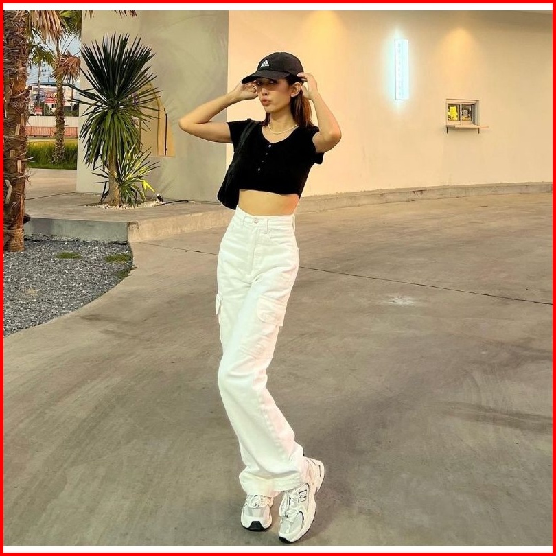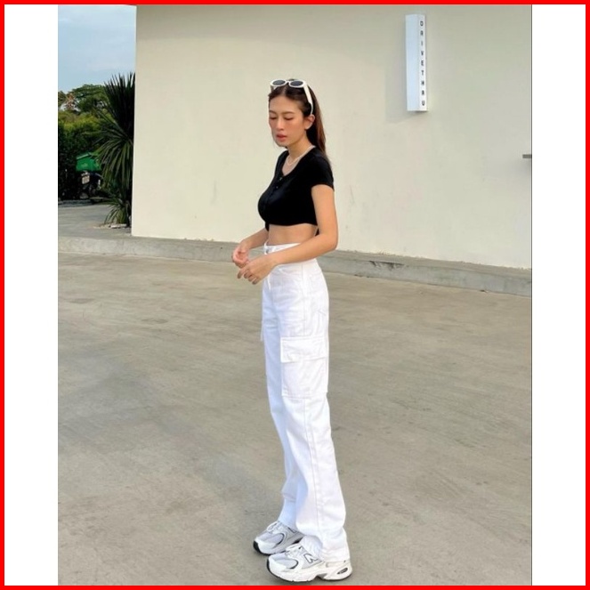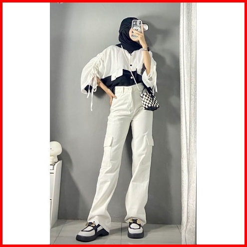 27-38 White Hw Cargo Loose Jeans Putih Hw Cargo Loose Jeans Celana Highwaist Cargo Loose Jeans Wanita Cewek