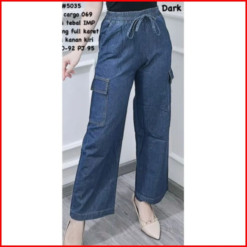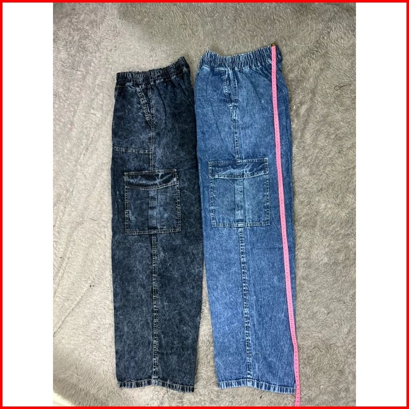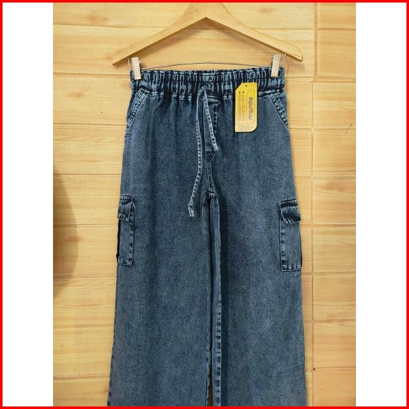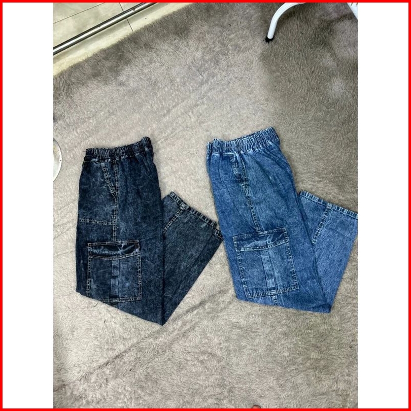 Highwaist Cargo Jeans Wanita Pinggang Karet Terbaru 2023