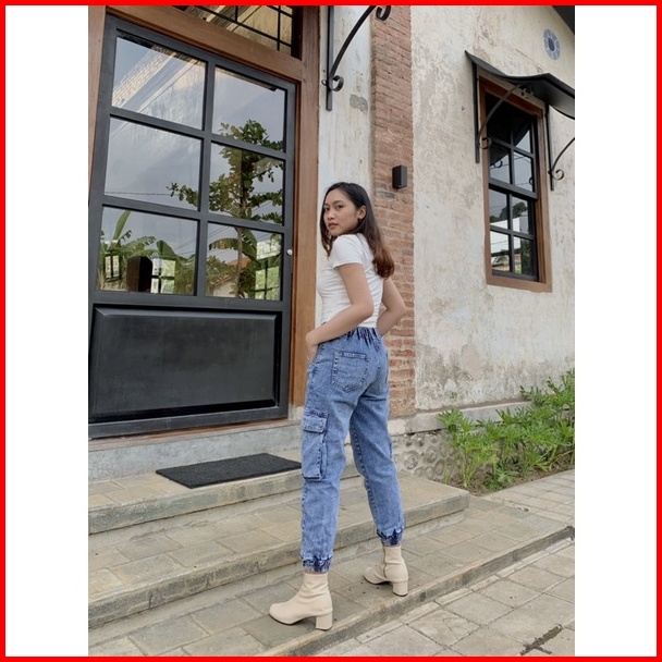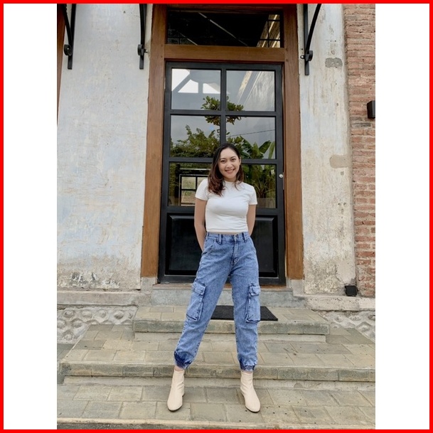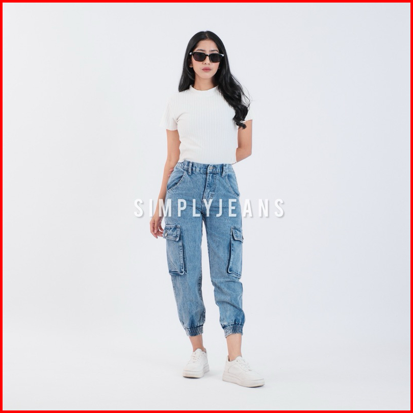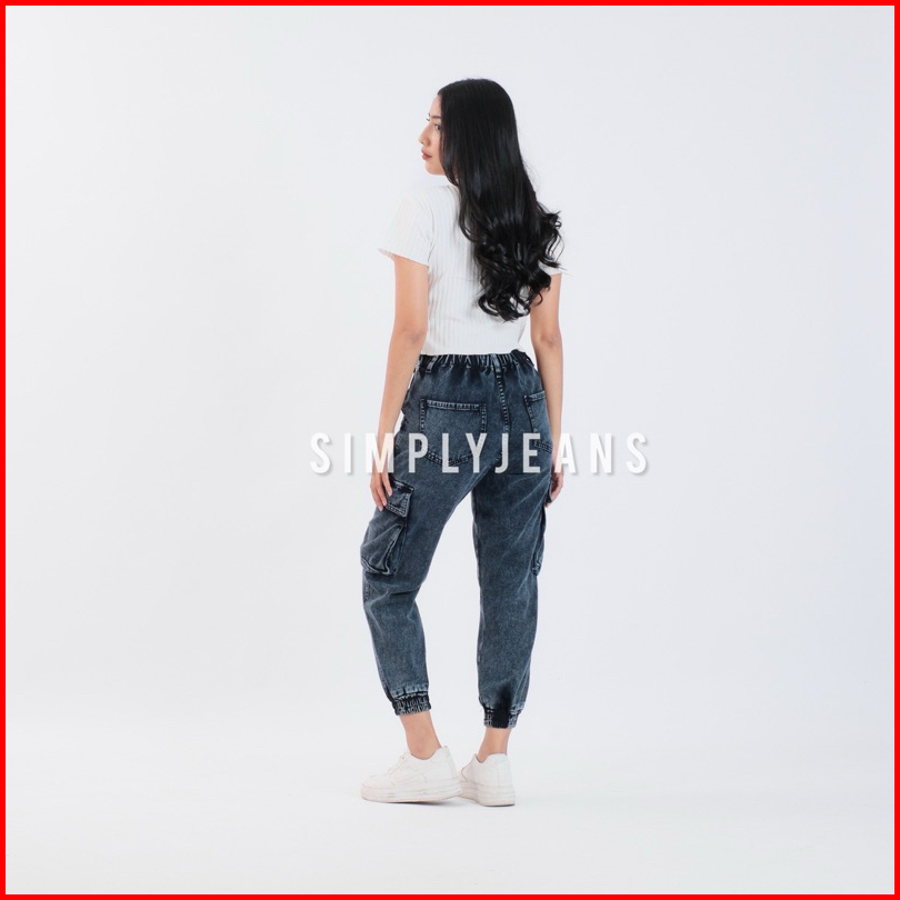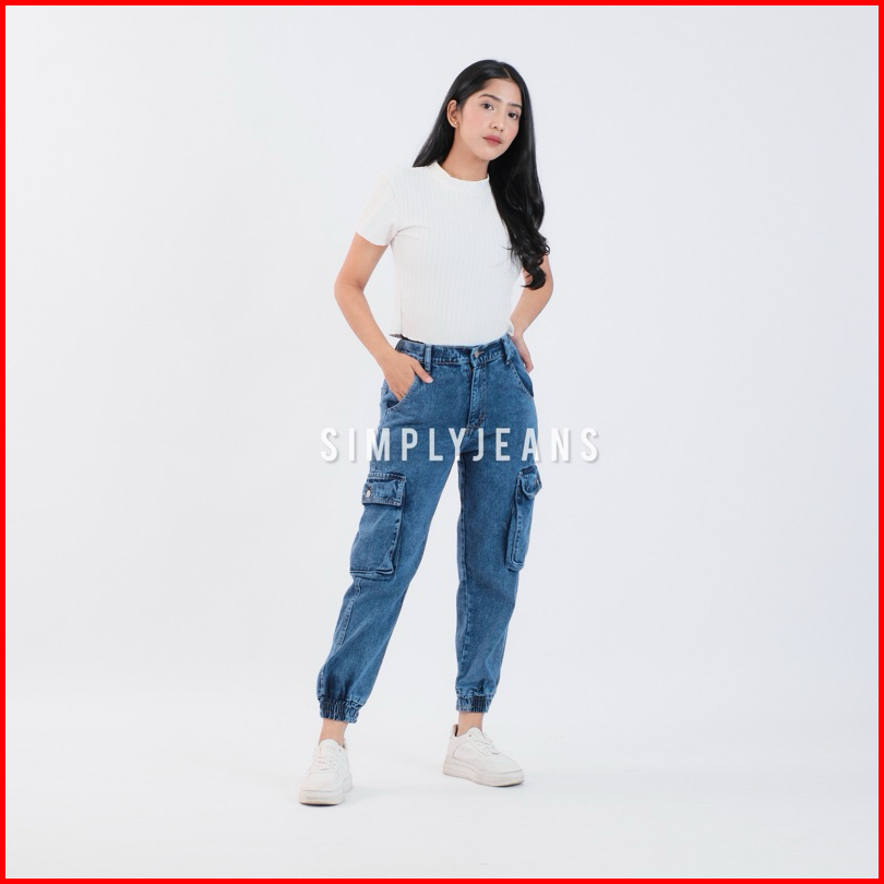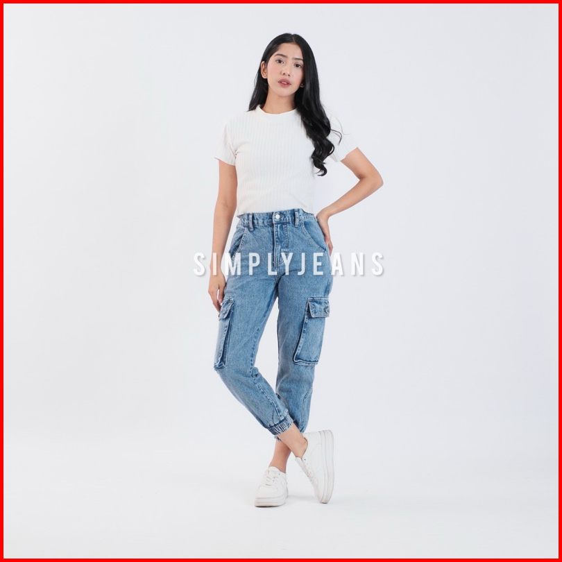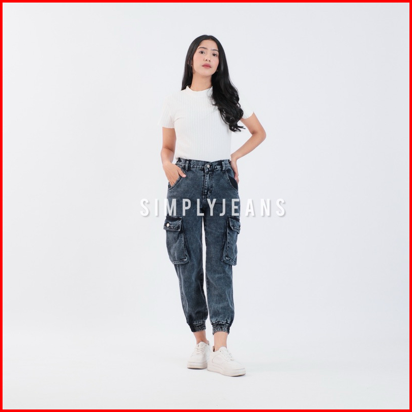 Celana Cargo Jogger Highwaist Jeans Wanita Pinggang Karet - Simplyjeans - Rubby Jogger