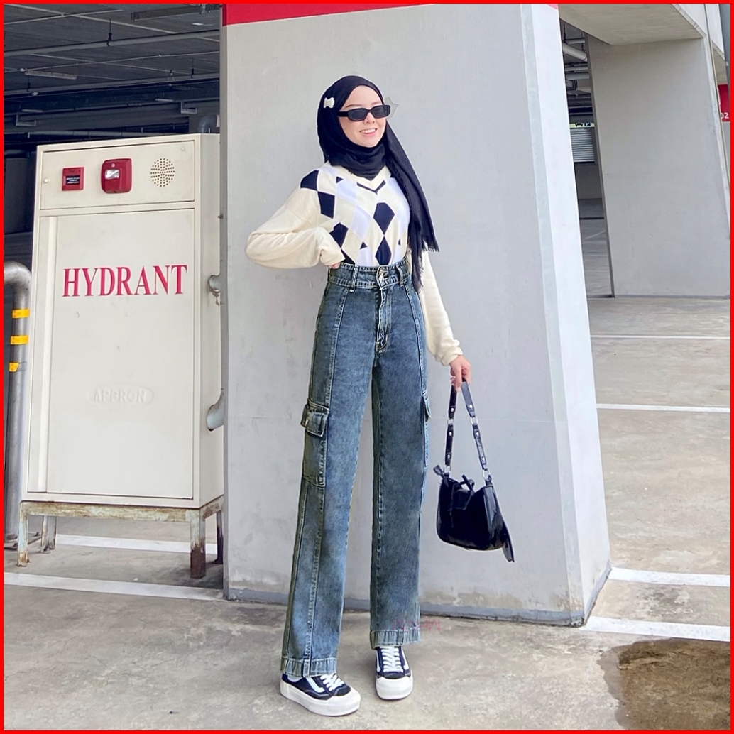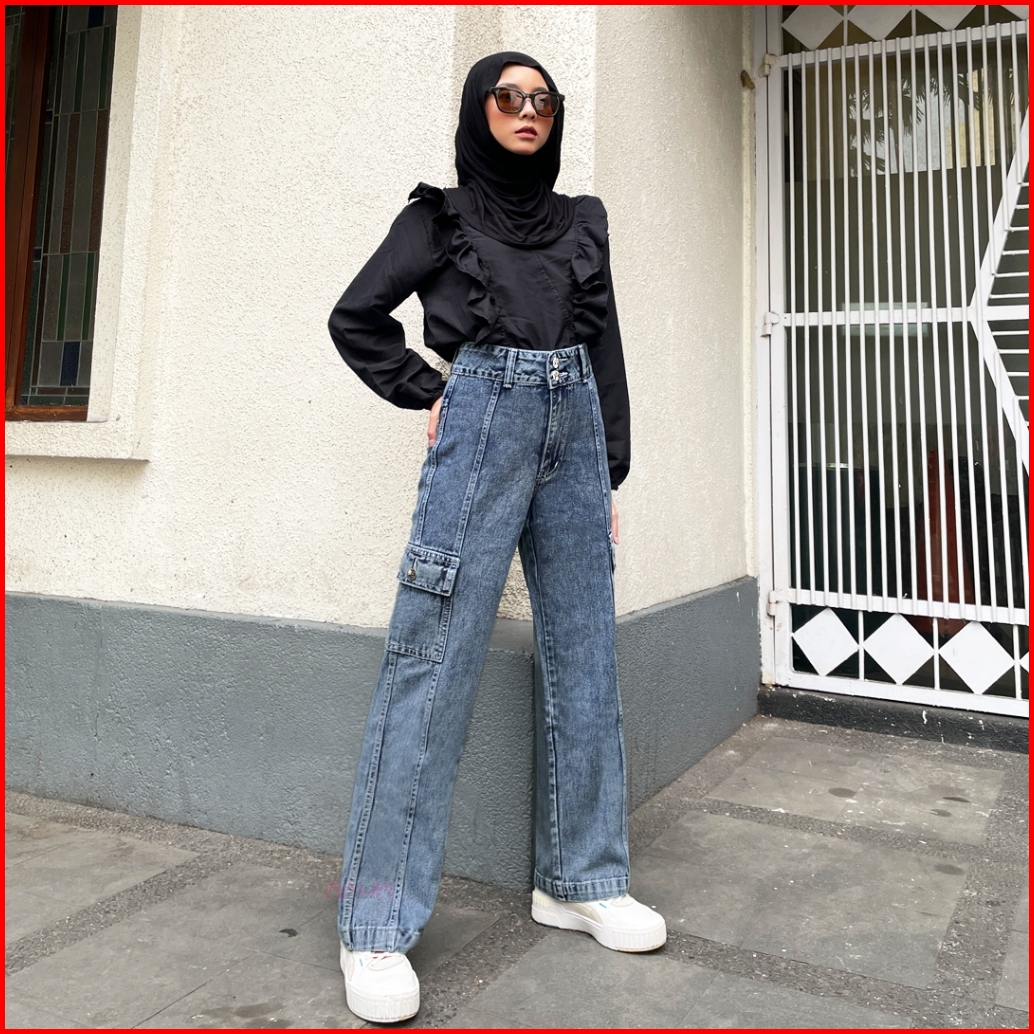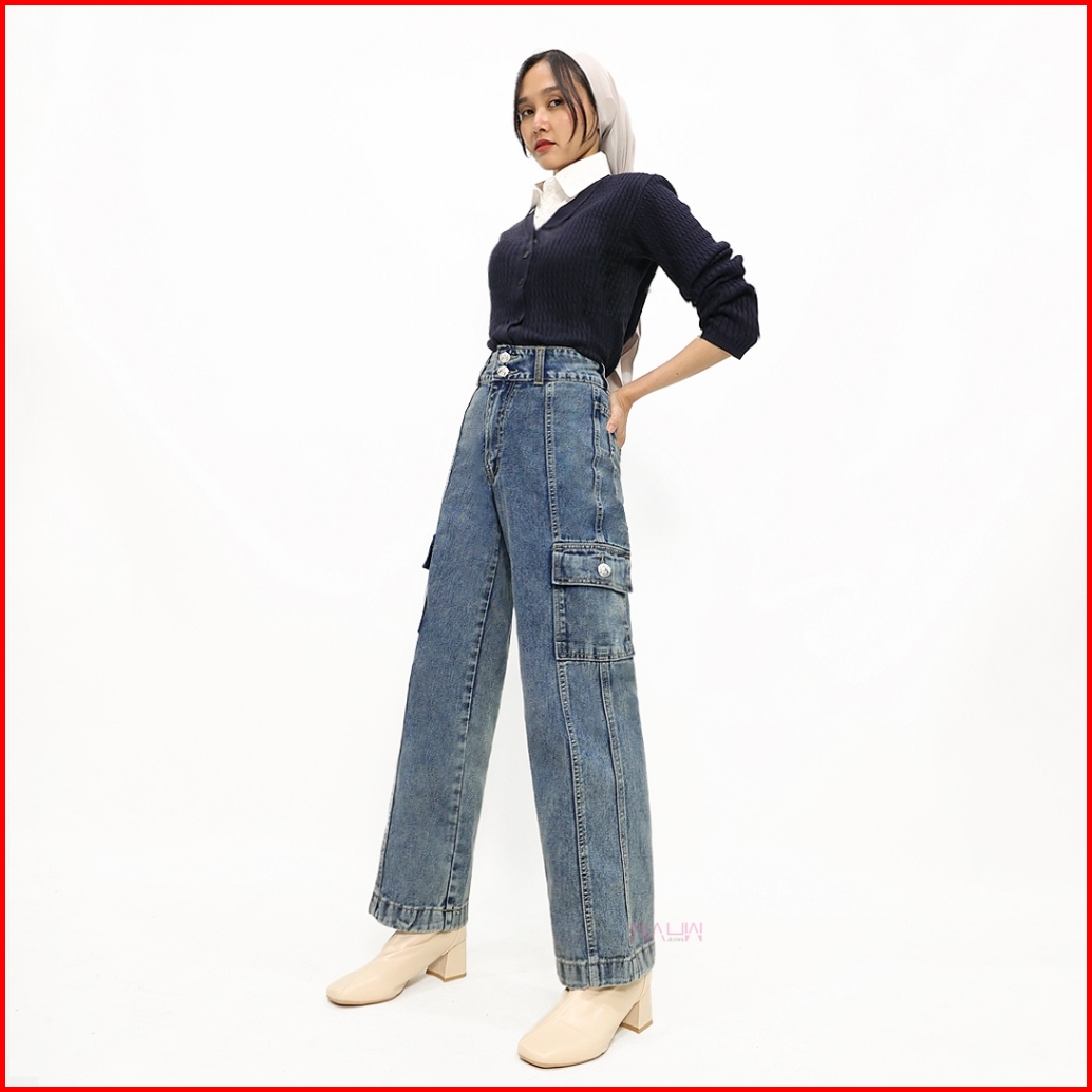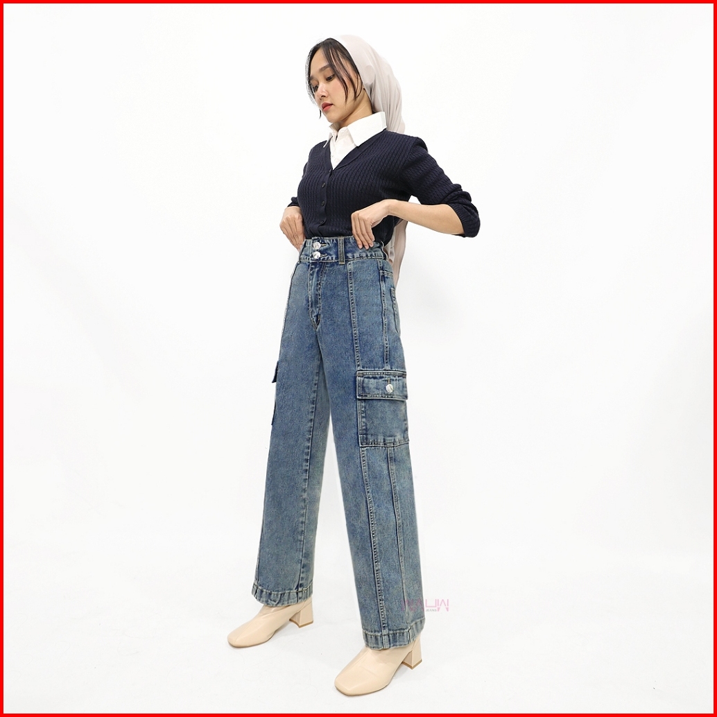 Wauw - Highwaist Basic Cargo Jeans 2195 Snow Brown Suga