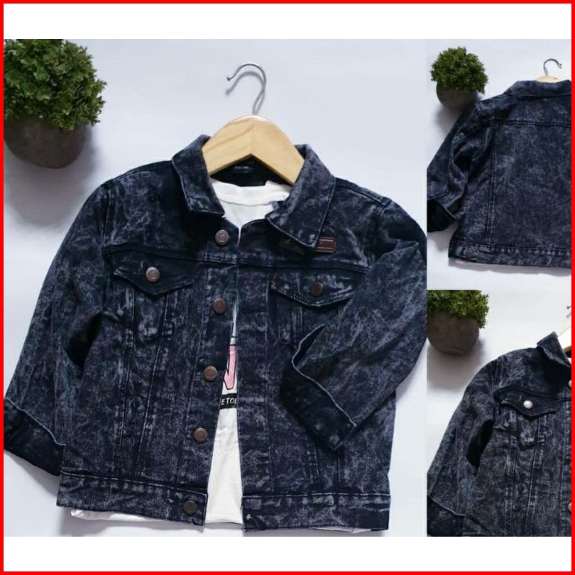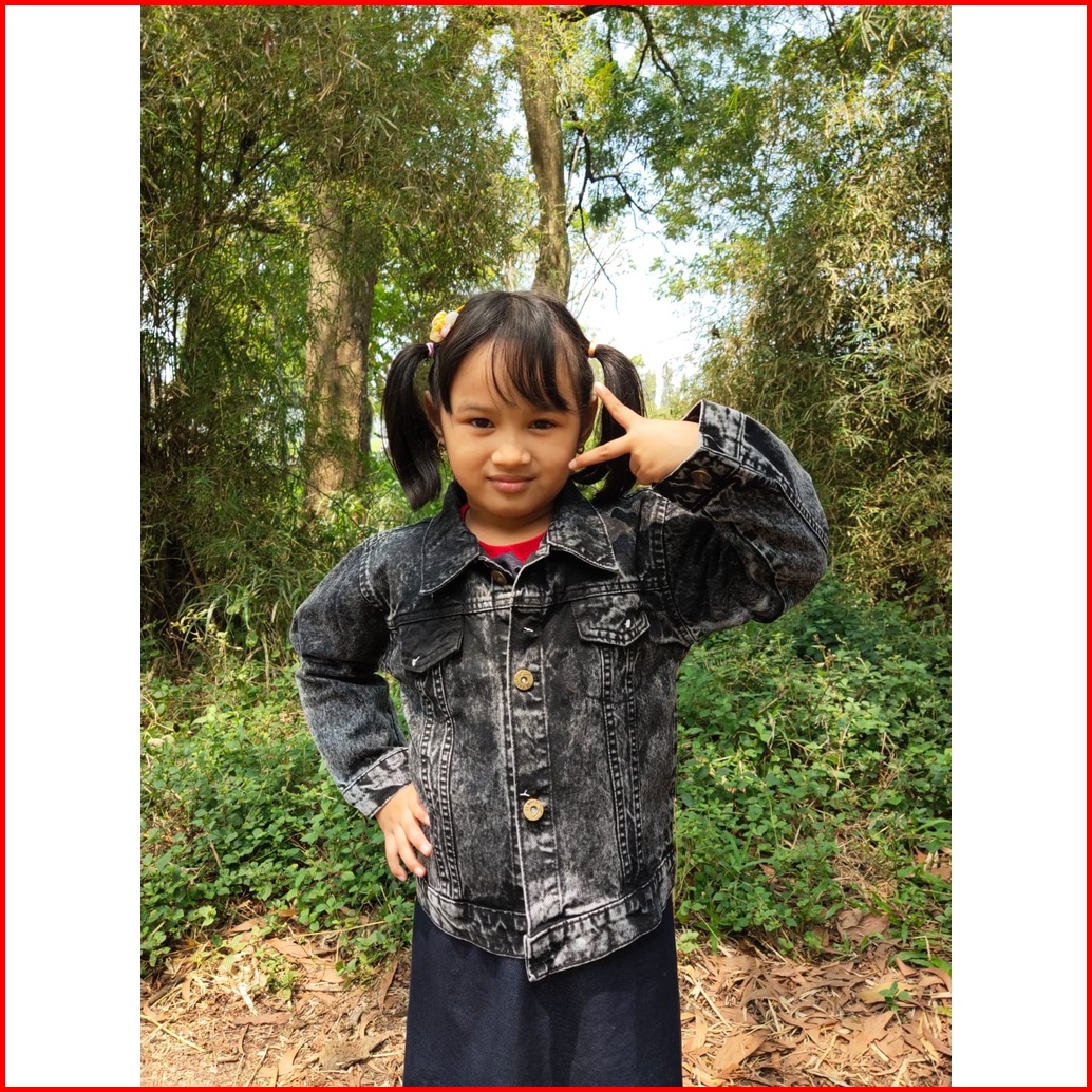 Jaket Jeans Anak 1- 11 Tahun Black Sandwash Snow Washing Tahun Unisex Jaket Jeans Anak Laki-laki Jaket Jeans Anak Peremp