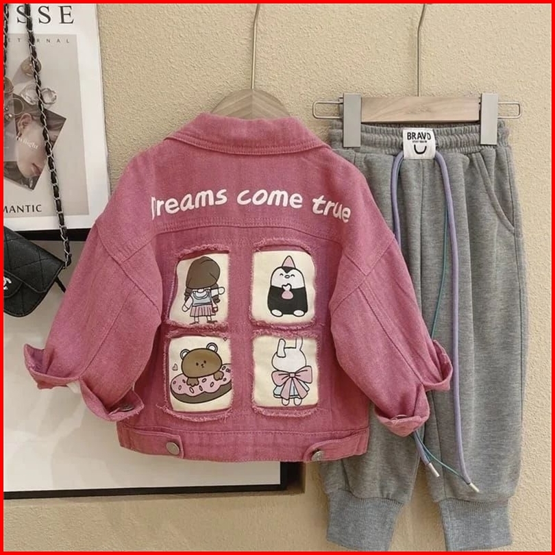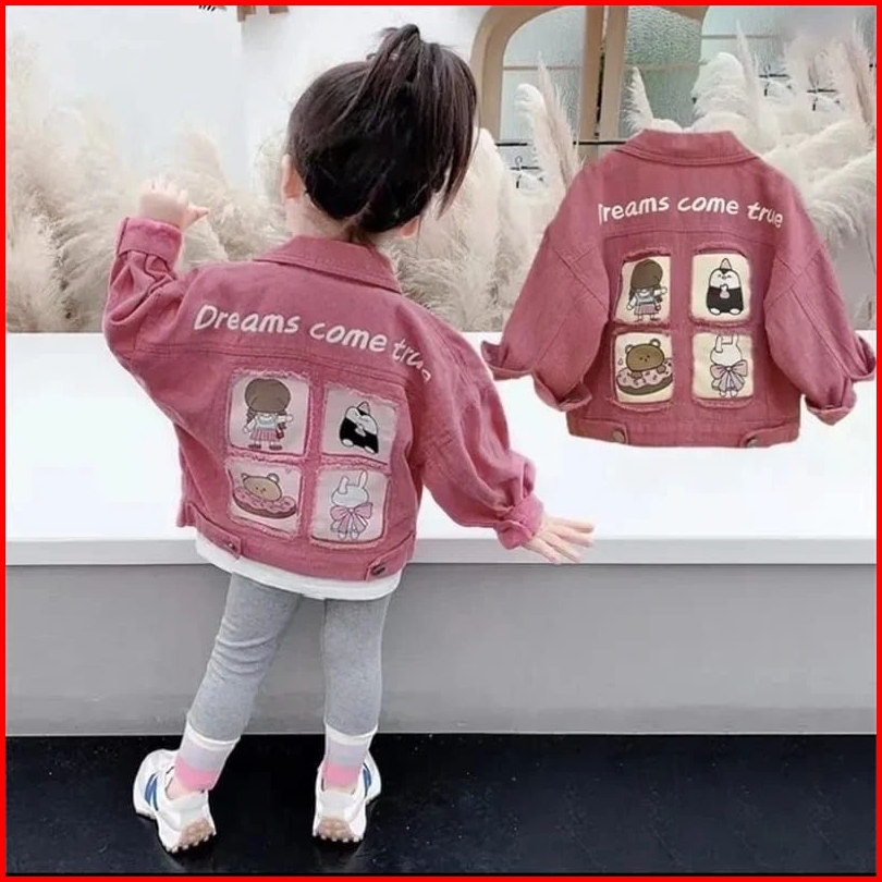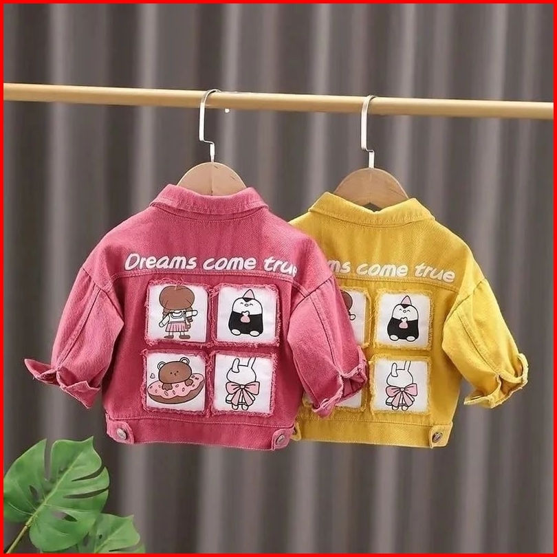 Jaket Jeans Anak Sobek Kotak-kotak Karakter Lucu Umur 1-12 Tahun