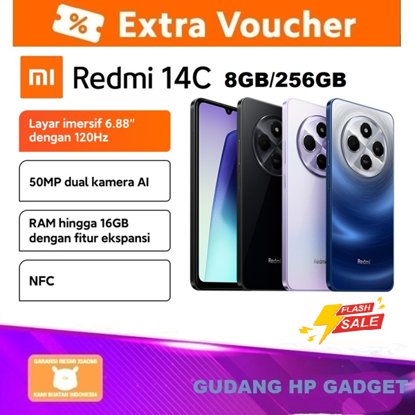 HP REDMI 14C 8/256GB GARANSI RESMI 6.88" Inch NFC 50MP AI Dual Kamera 5160mAh MediaTek Helio G81