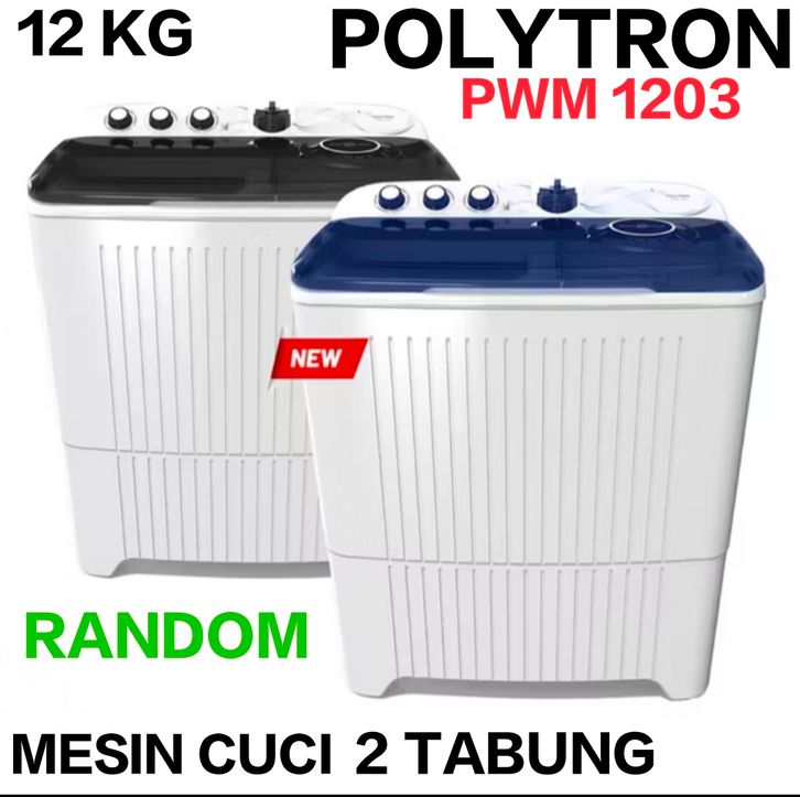 POLYTRON MESIN CUCI PWM 1203 MESIN CUCI 2 TABUNG 12 KG WASHING MACHINE TWIN TUBEPRIMADONA GIANT GARANSI RESMI