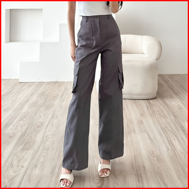 Rora Cargo Pants Celana Wanita Katun Twill Premium Wide Leg Panjang Korean Style Kun Collection