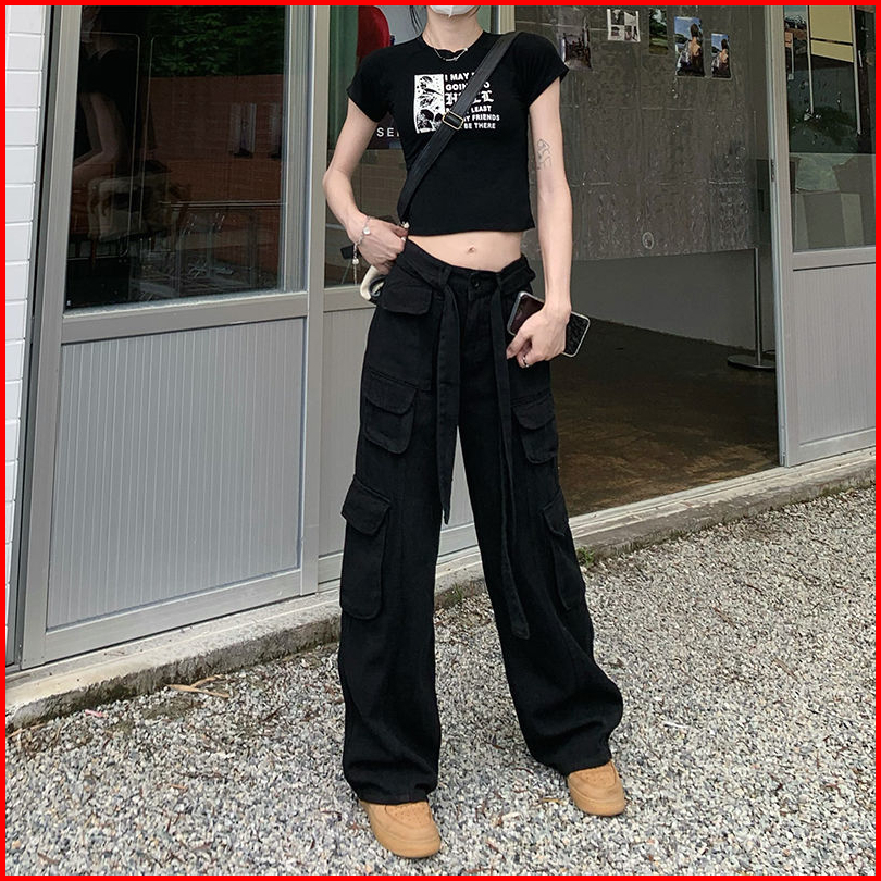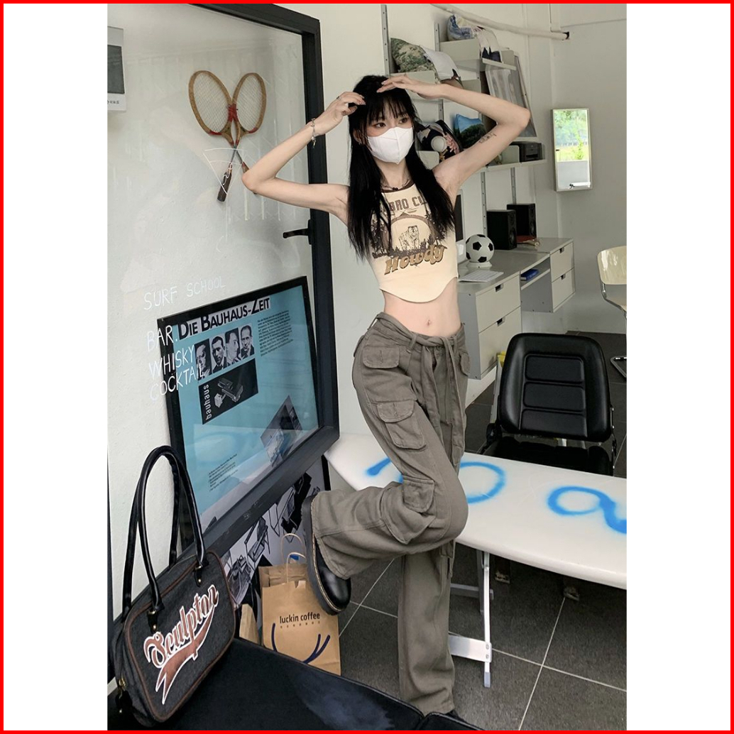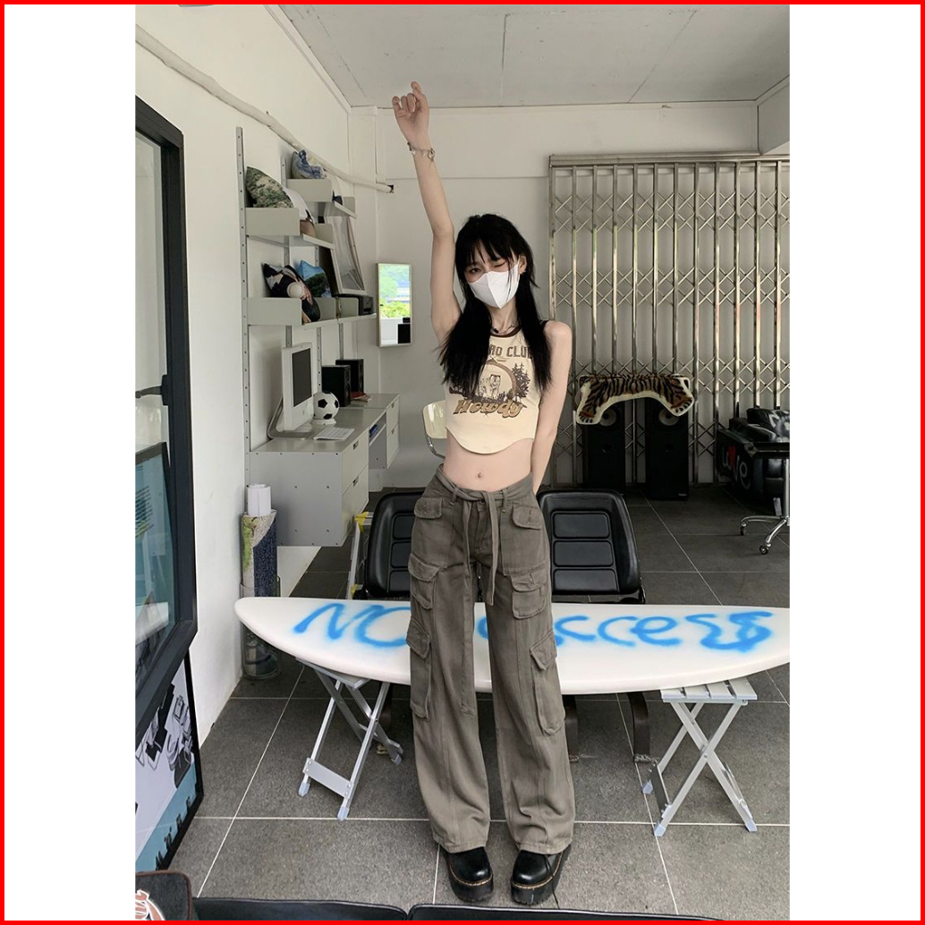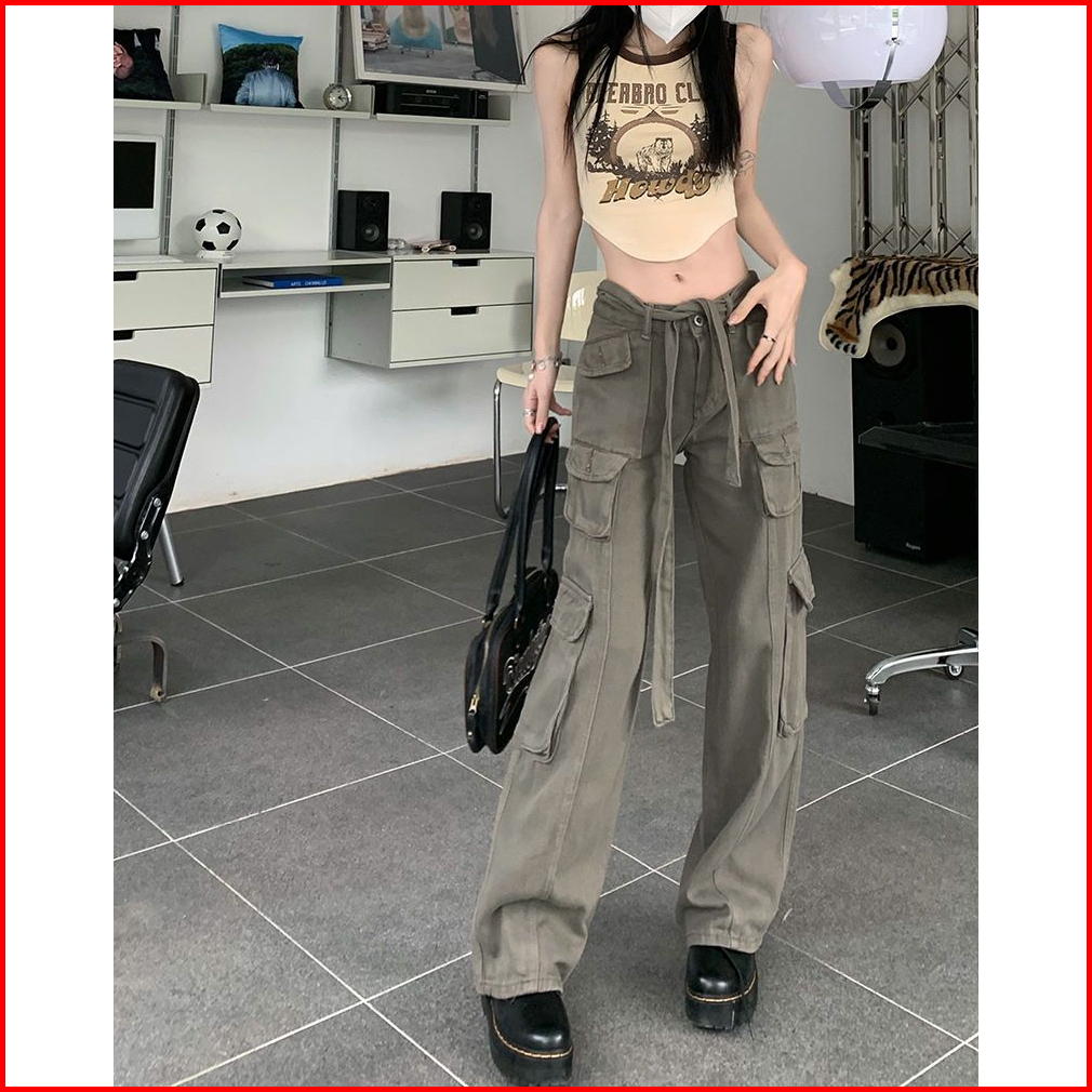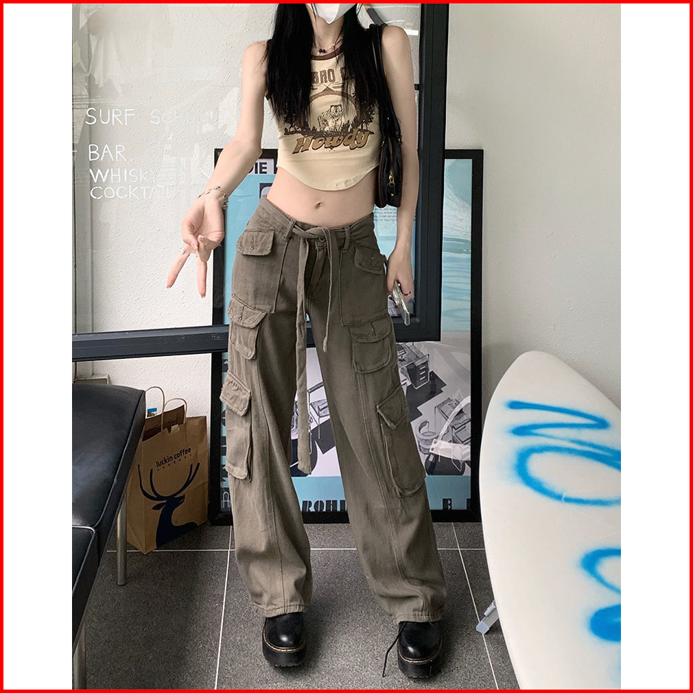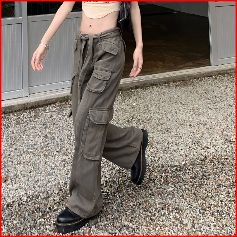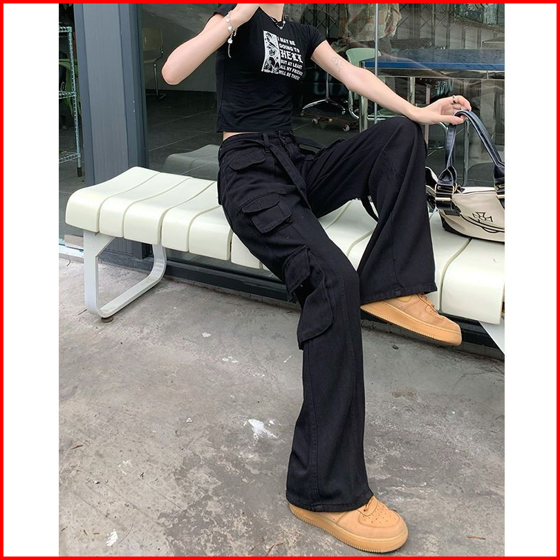 Lulu Cargo Jeans-- Highwaist Cargo Celana Jeans Wanita Gaya Jalanan Amerika Realpict