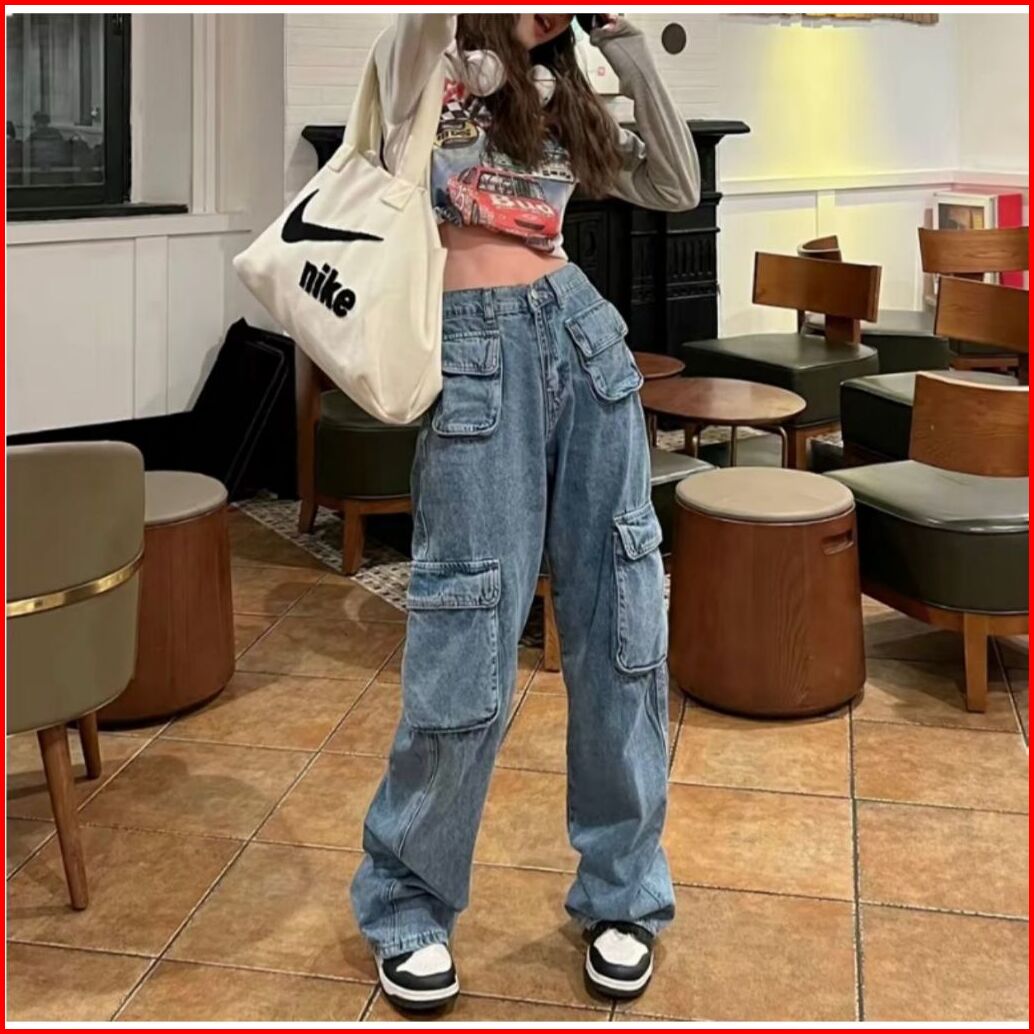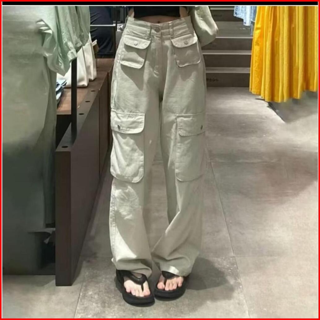 Celana Highwaist Cargo Jeans Wanita Korean Style - Celana Pasir Putih