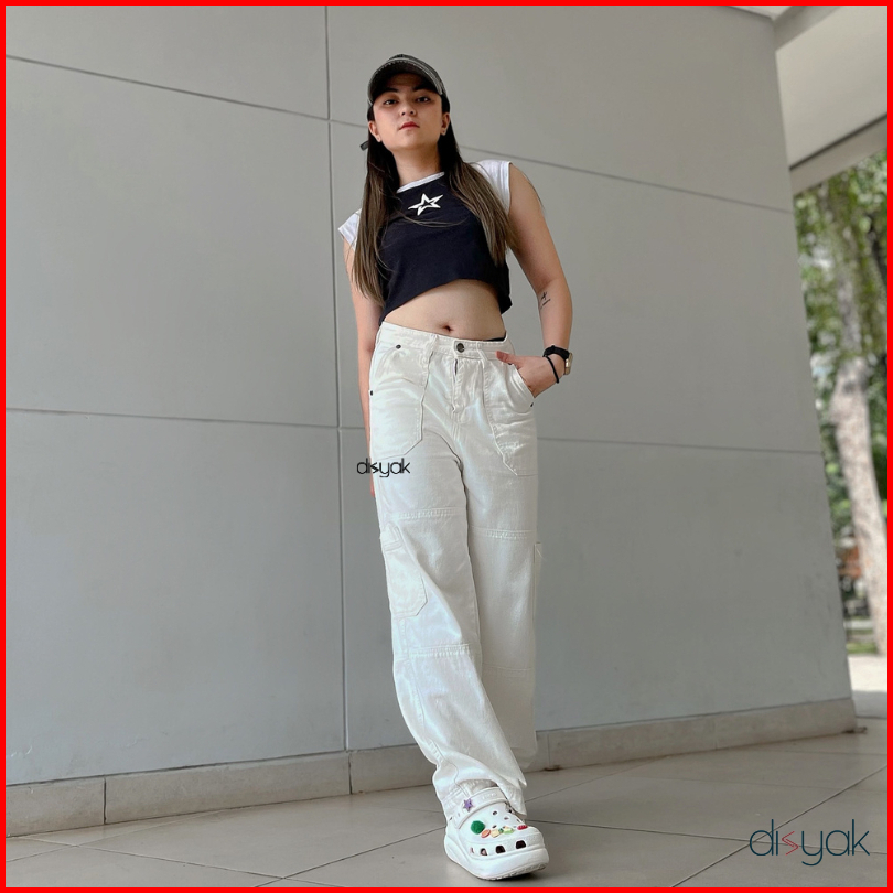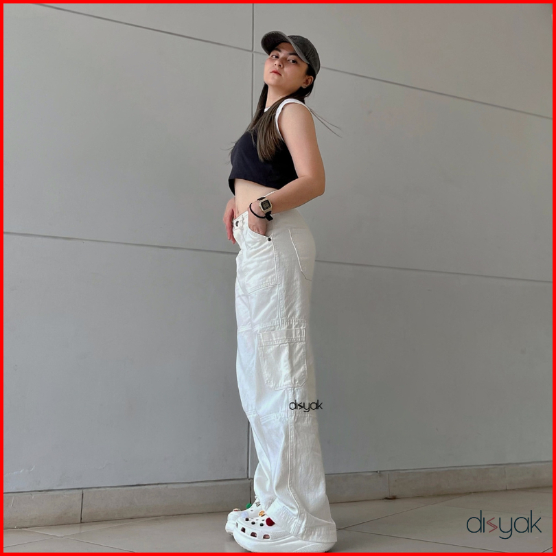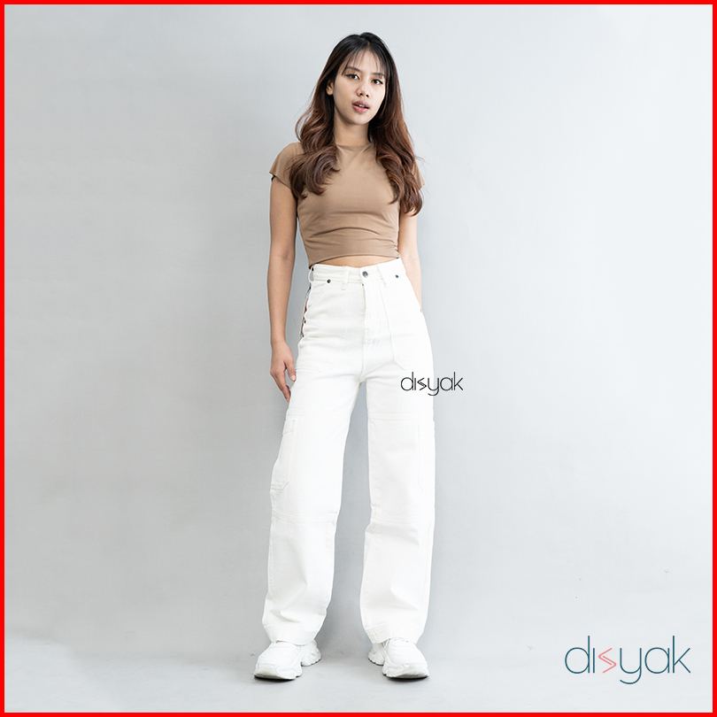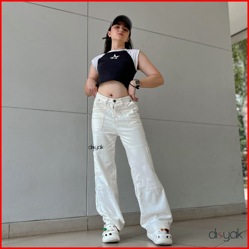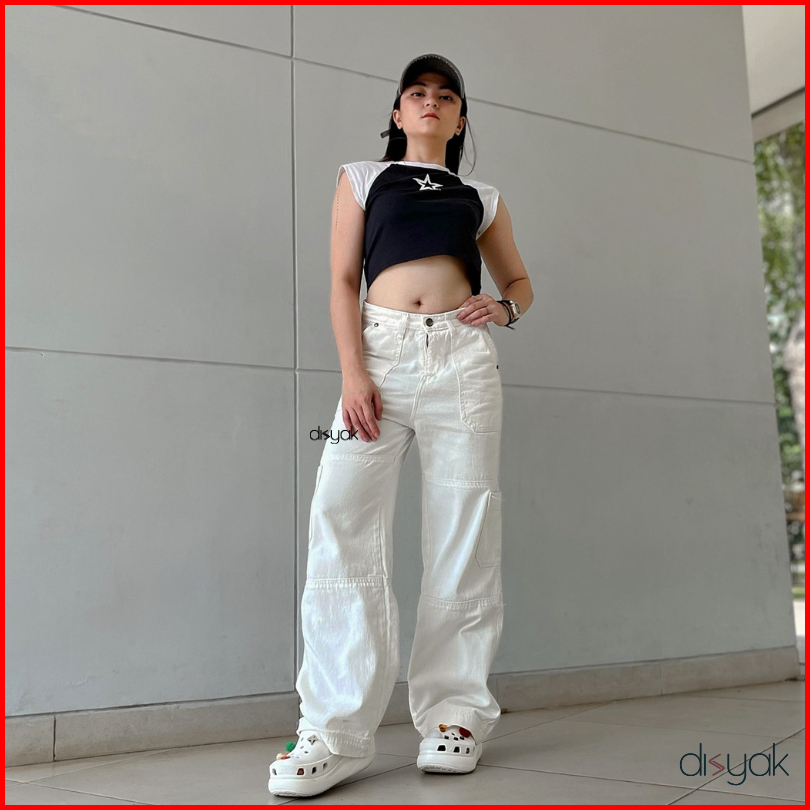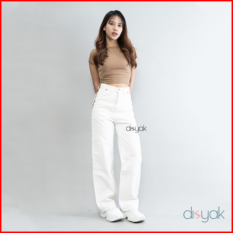 Disyak - Cargo Pants Loose Highwaist Jeans Non-stretch Broken White 115-215