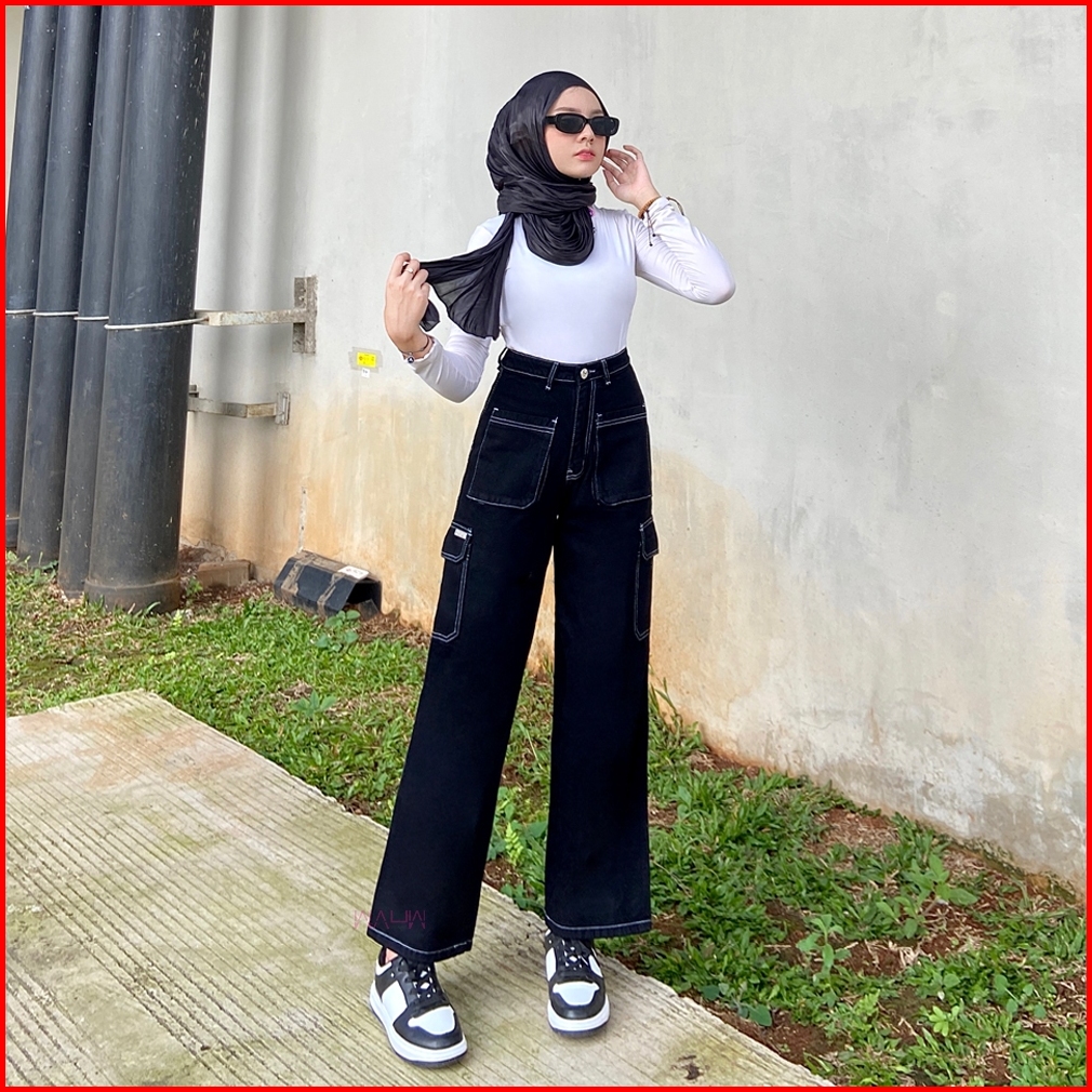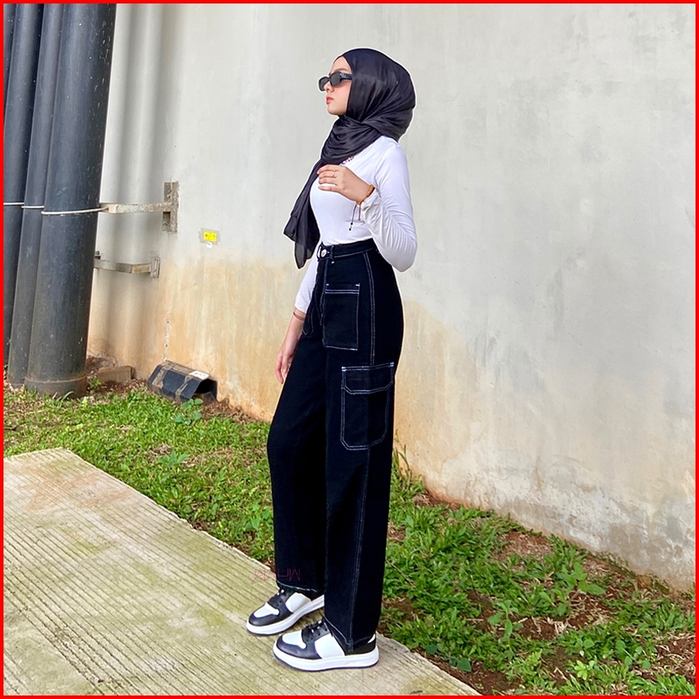 Wauw - Tata Highwaist Cargo Baggy Jeans - Black 2300