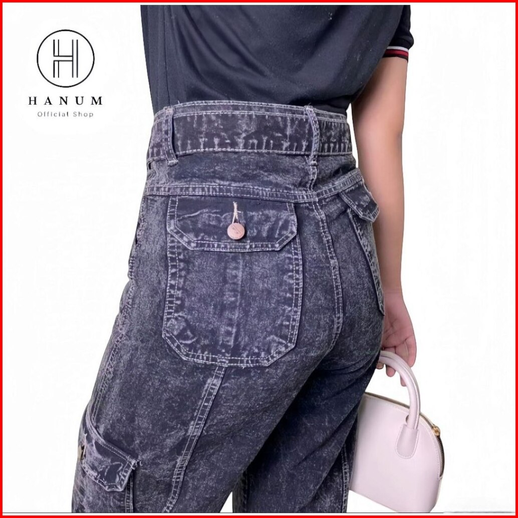 Celana Cargo Jeans Wanita Hw Celana Cargo Jeans Wanita Highwaist Tali Pinggang Loose Pants Cargo