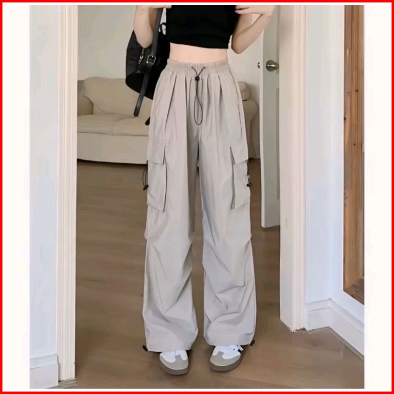 Celana Kulot Cargo Serut Celana Anti Kusut - Celana Kulot Wanita - Celana Cargo Korean Style Murah Terlaris