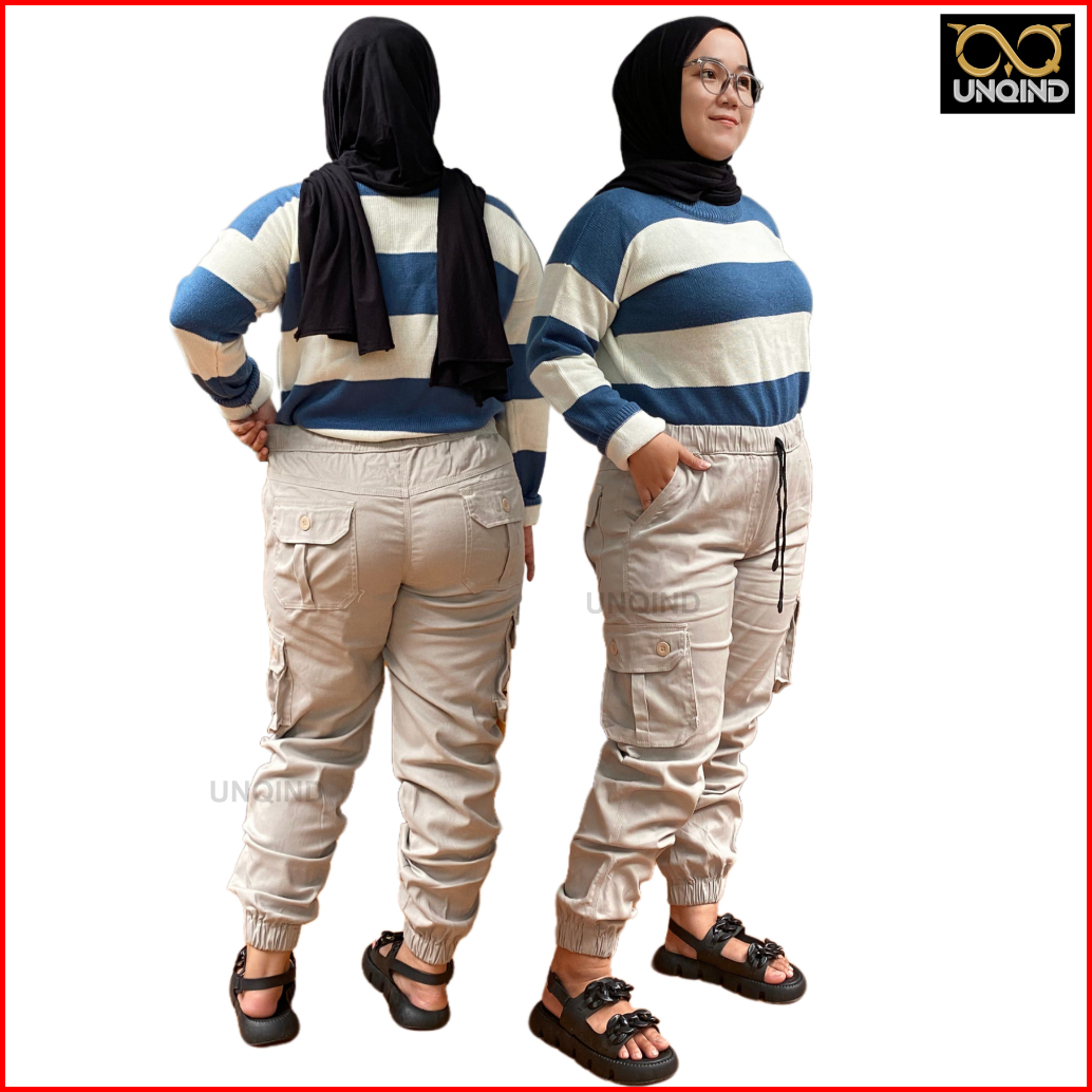 Unqind - Celana Cargo Wanita Jumbo Joger Twill Stretch - Celana Panjang Wanita Jumbo Melar
