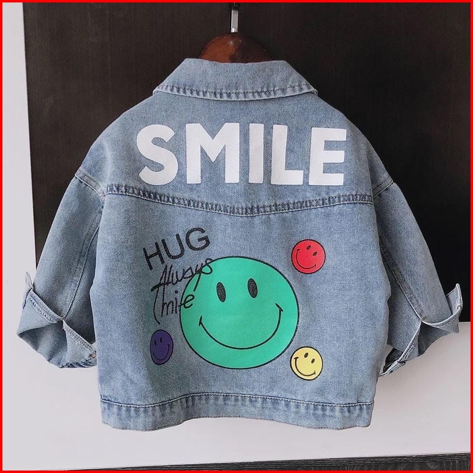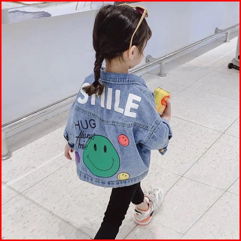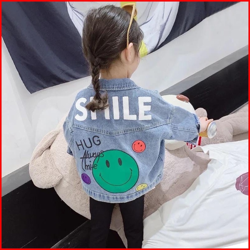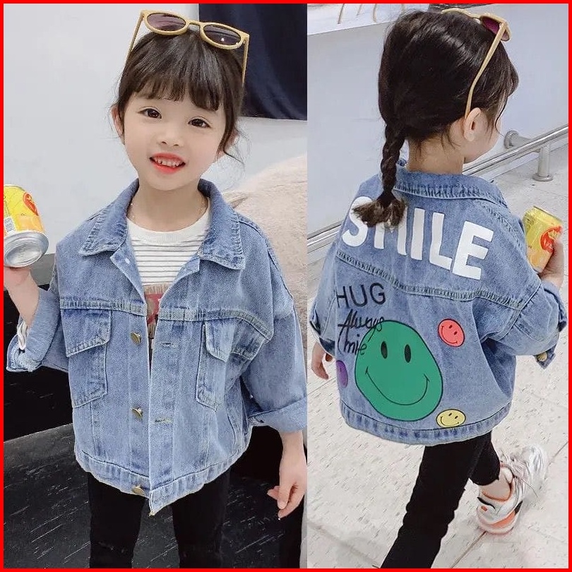 Jaket Denim Smiley Untuk Anak-anak Perempuan Jaket Denim Bordir 1-12 Tahun Pakaian Luar Perempuan