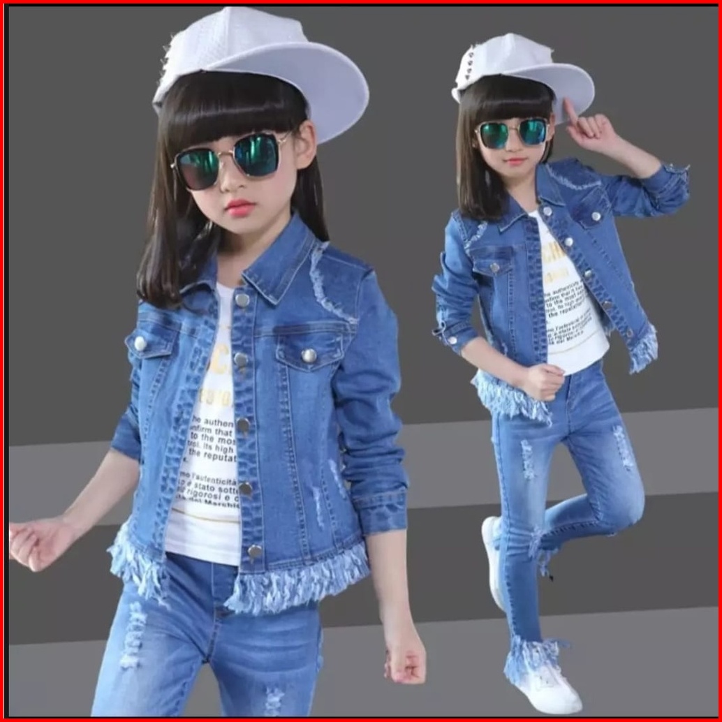 Jaket Jeans Polos Anak Perempuan Untuk Anak Umur 3 - 11 Tahun