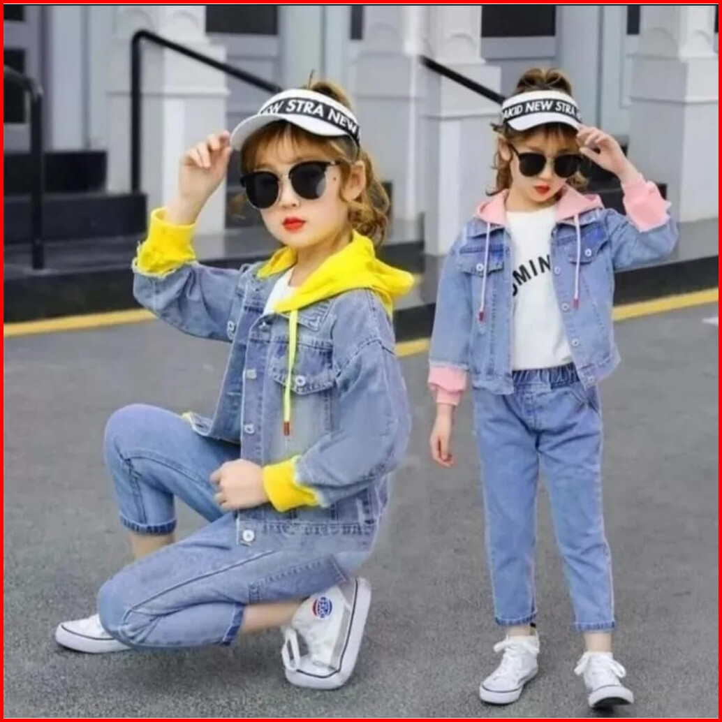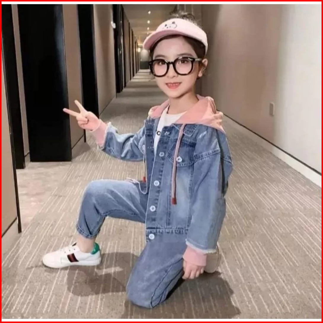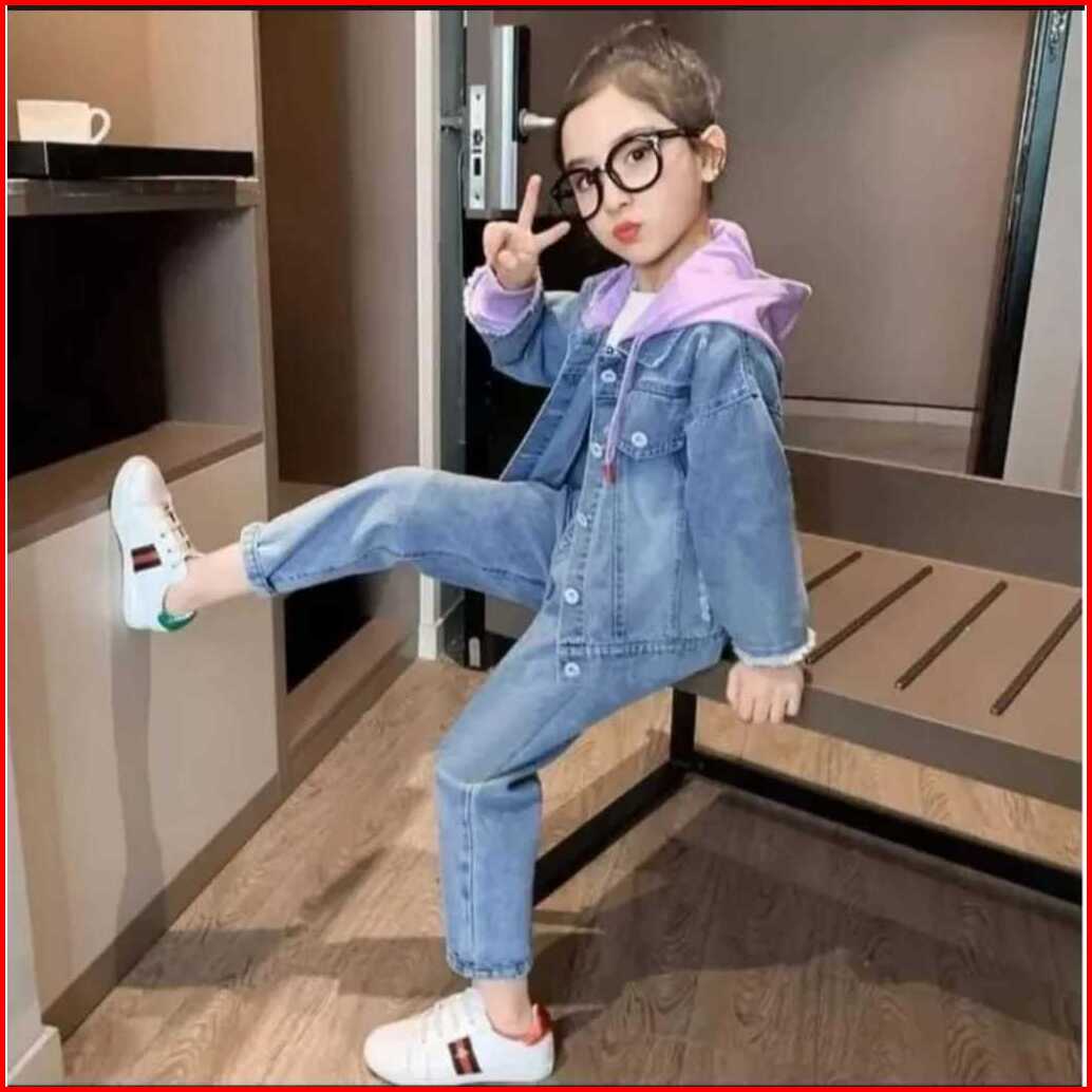 Jaket Jeans Hoodie Anak Perempuan Untuk Anak Umur 2 Tahun Sampai 13 Tahun