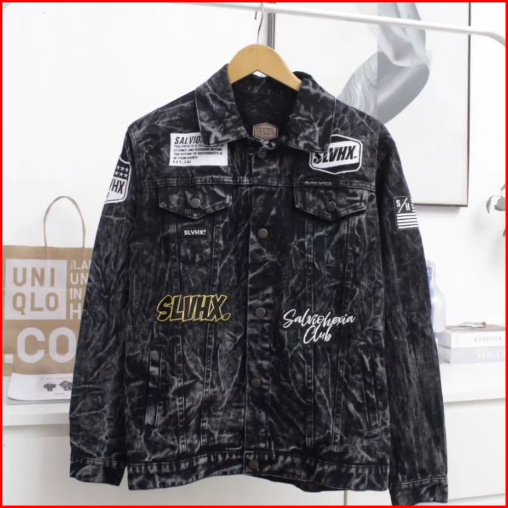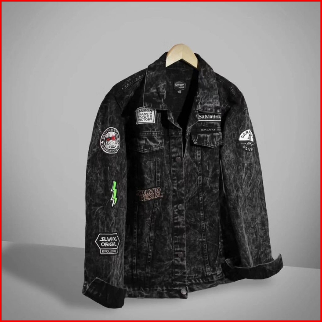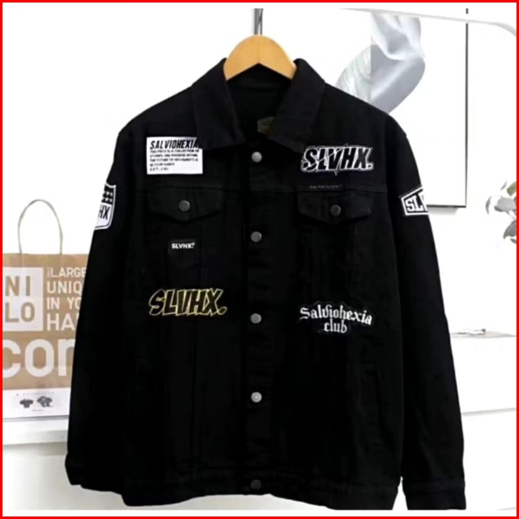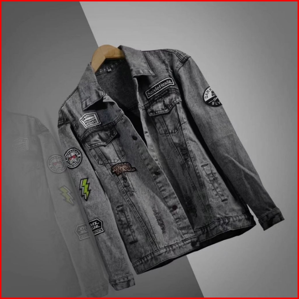 Jaket Jeans Pria Bordir Salviohexia Jaket Denim Cowok Emblem M-xxxl Oversize Terbaru