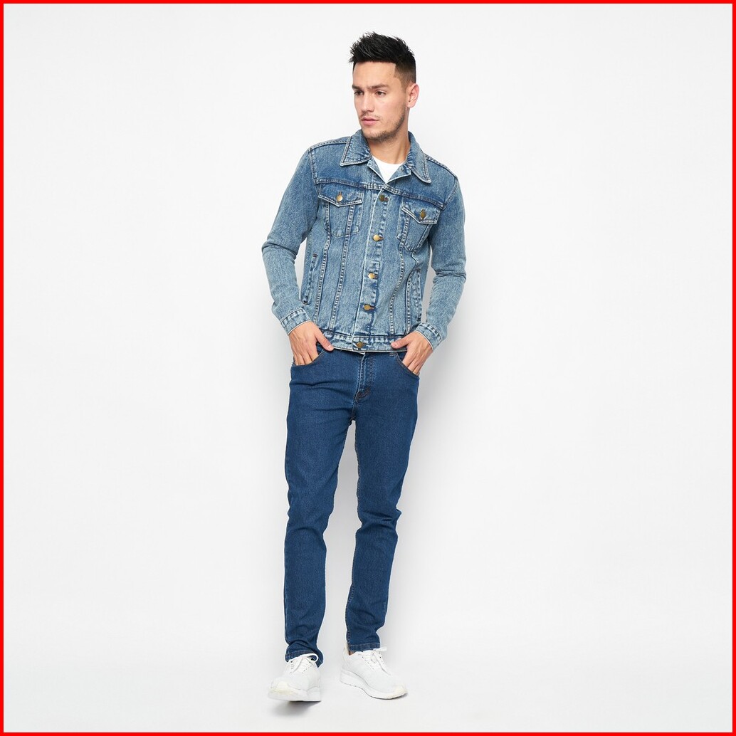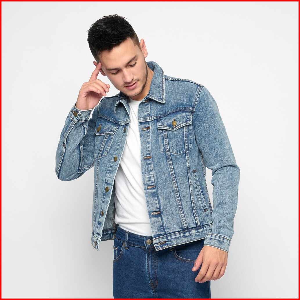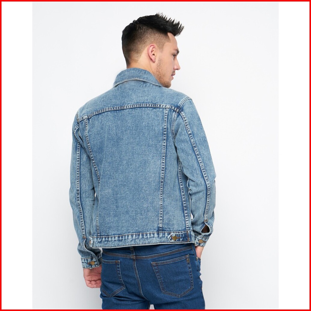Hillboss Jaket Jeans Pria Regular Fit Washed Blue Benza - Jckt003 Jaket Denim Casual