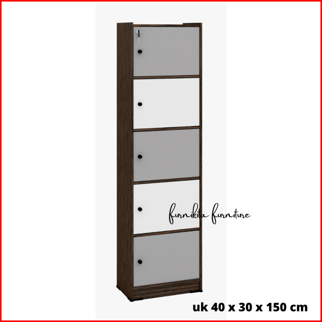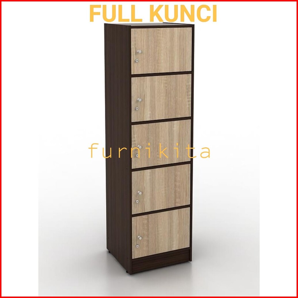 Rak Buku Serbaguna Kayu Susun 5 Full Kunci Lemari Arsip File Rak Helm