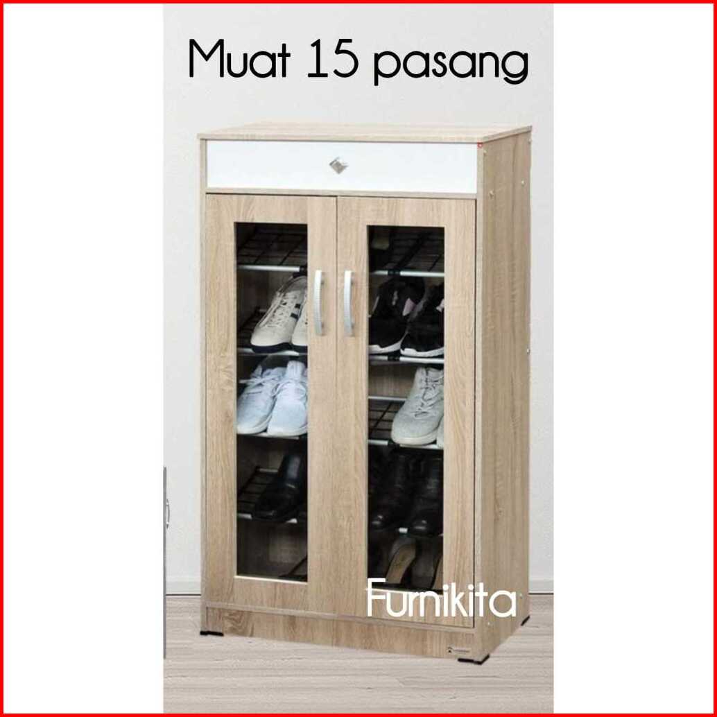 Rak Sepatu Kaca Kayu 15 Pasang Frenchy Brown