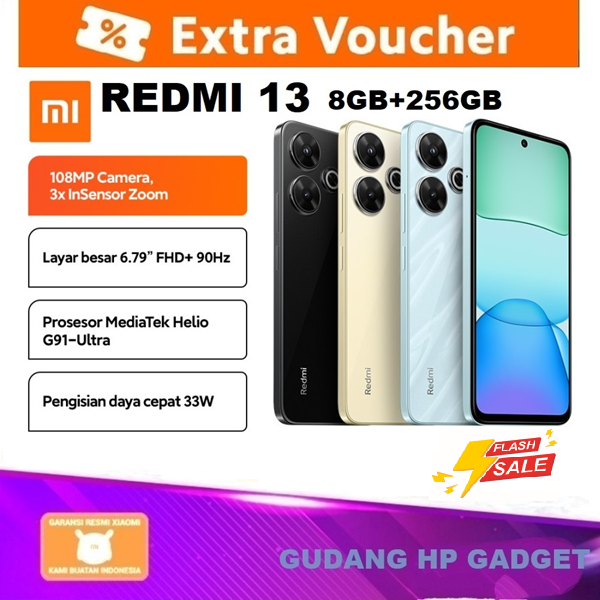 HP REDMI 13 8/256GB GARANSI RESMI NFC Kamera 108 MP Super MediaTek Helio G91-Ultra 33W Fast Charging