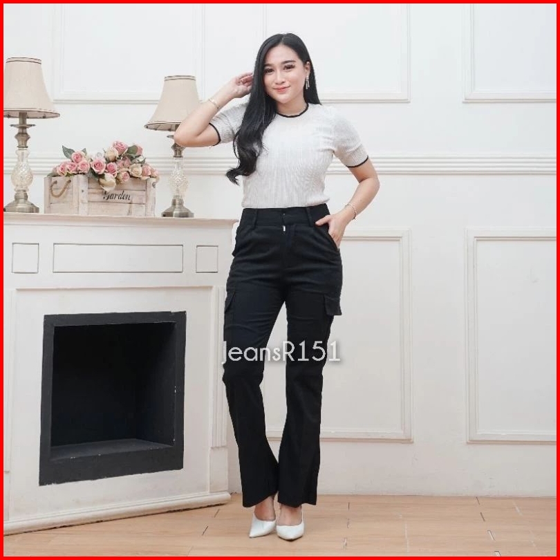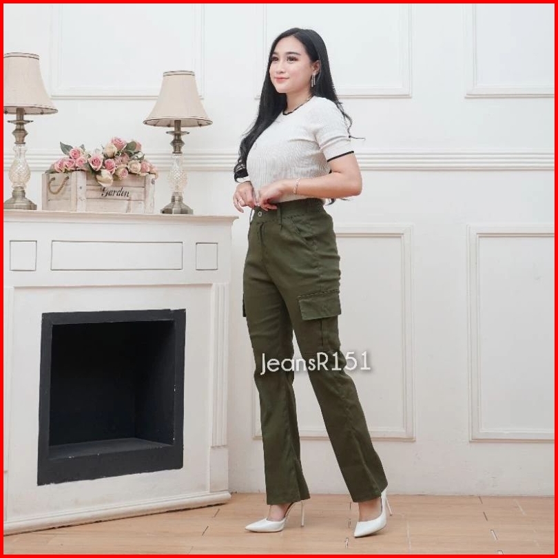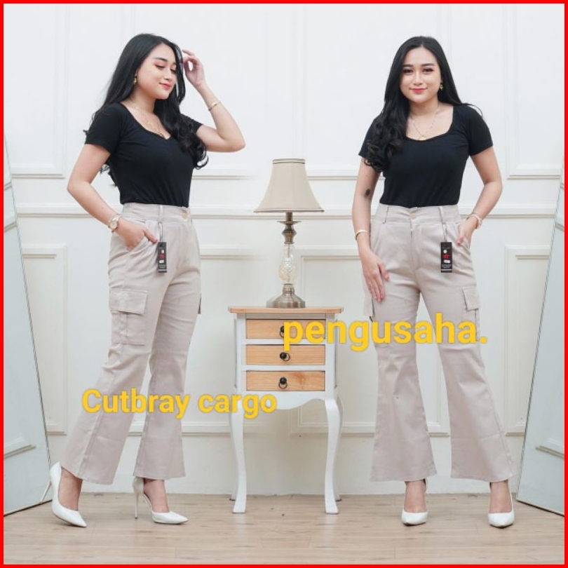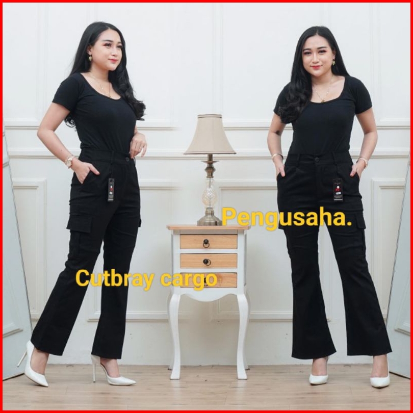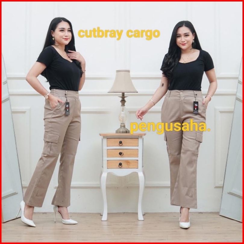 Celana Cargo Cutbray Stretch Highwaist Combed Big Size Jumbo L-xxl