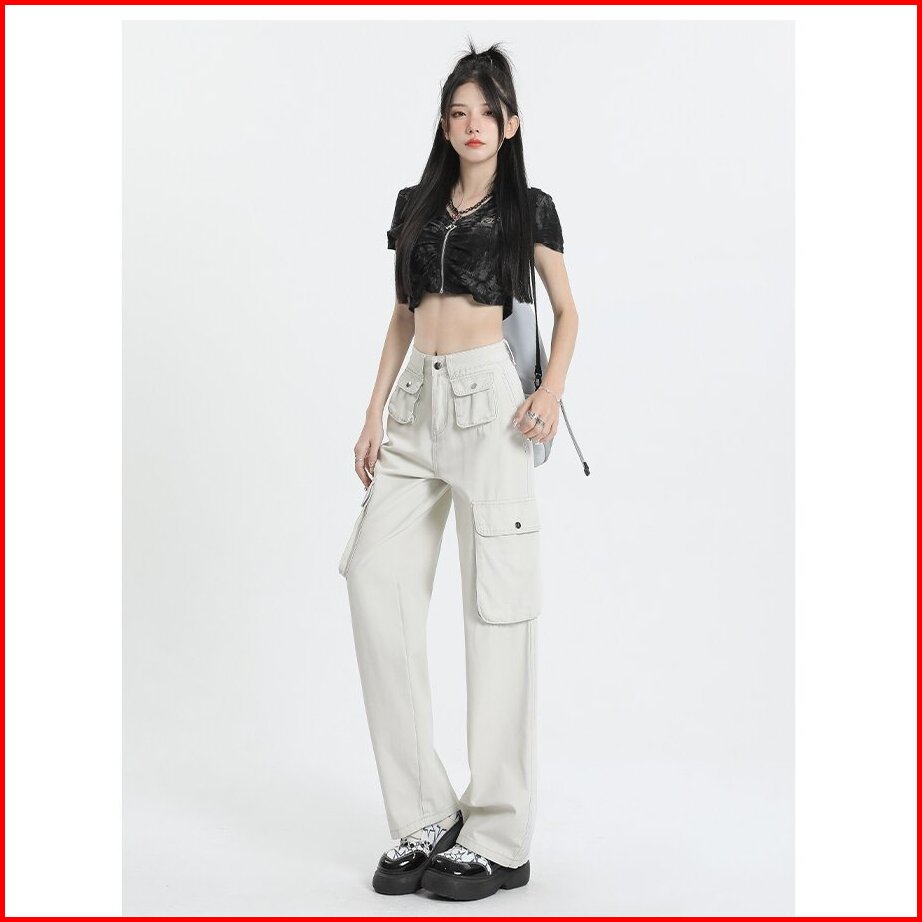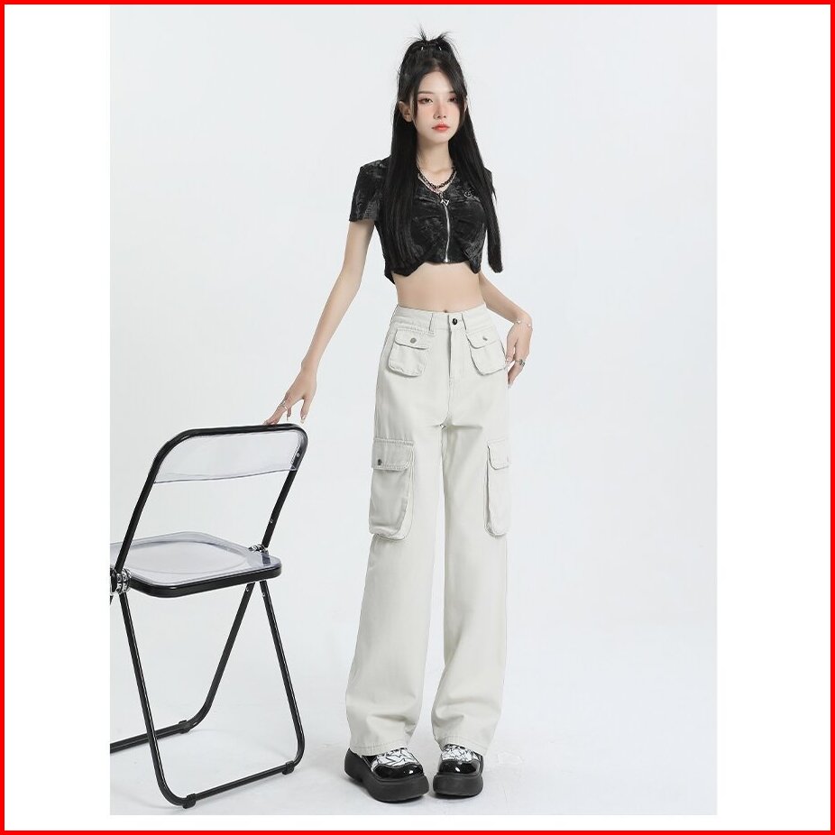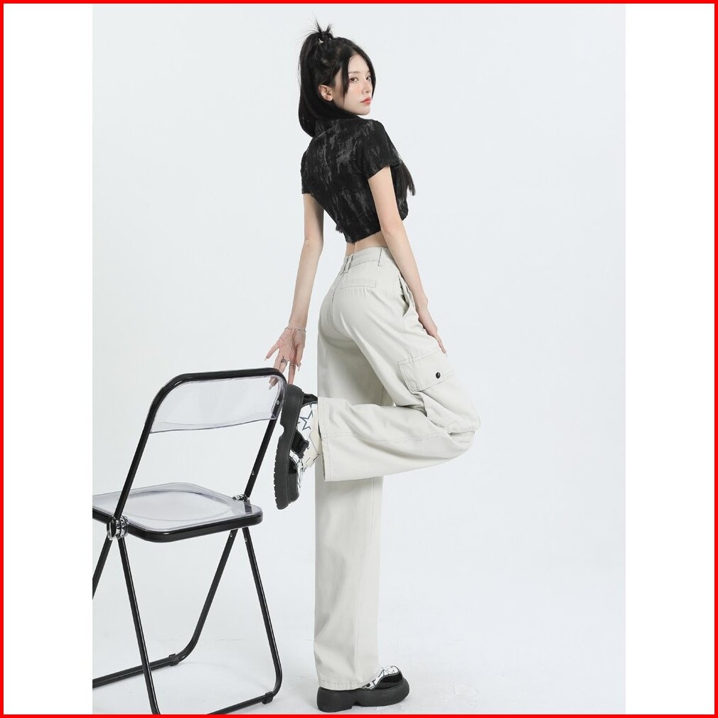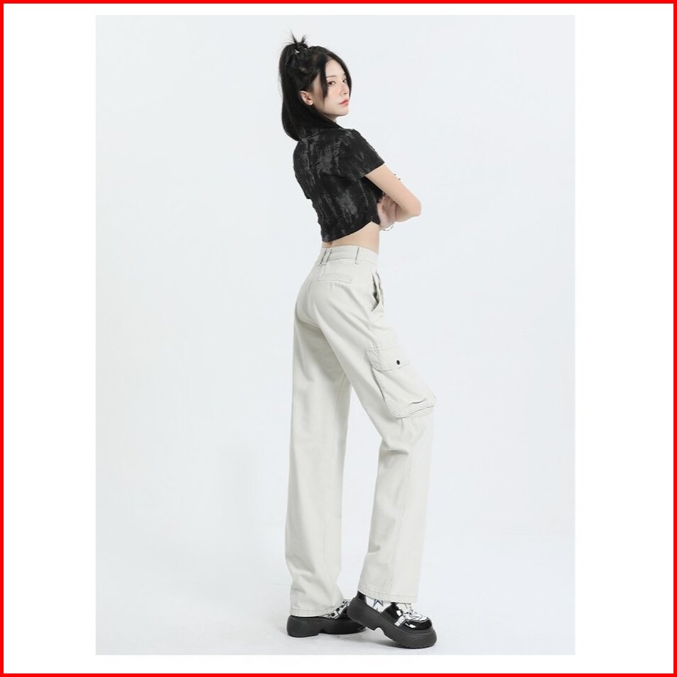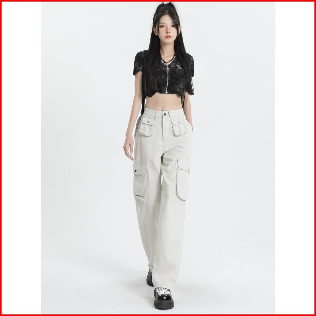 Celana Cargo Wanita Korean Style Highwaist Pants Pasir Putih Jumbo Big Size