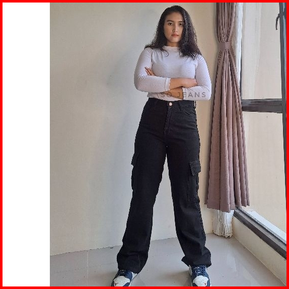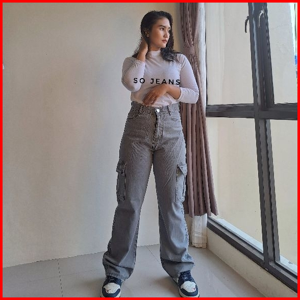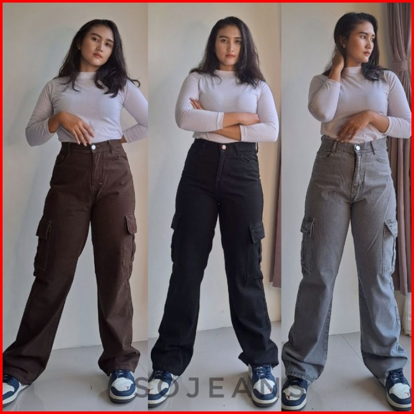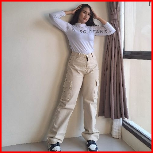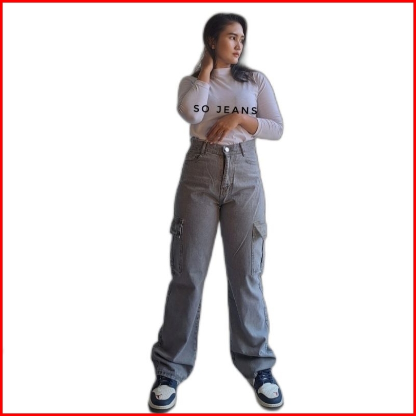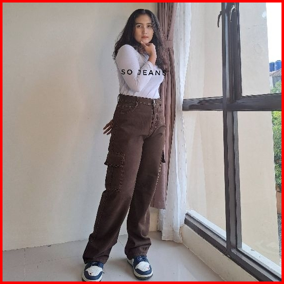 Sj - Celana Panjang Highwaist Loose Kargo Jeans Korean Style
