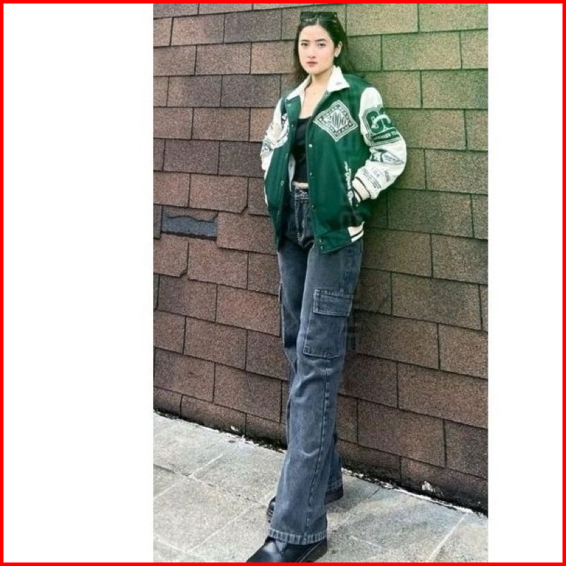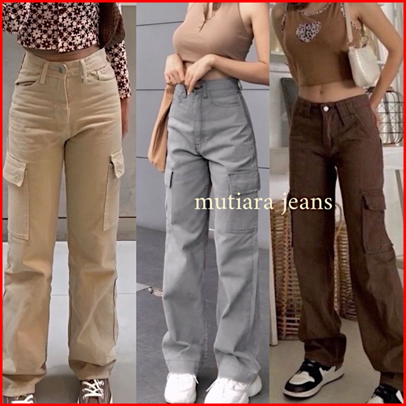 Highwaist Cargo Jeans Wanita Viral Jeans Warna Mutiara Jeans