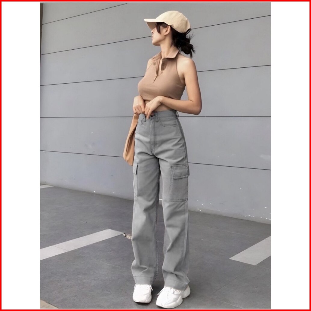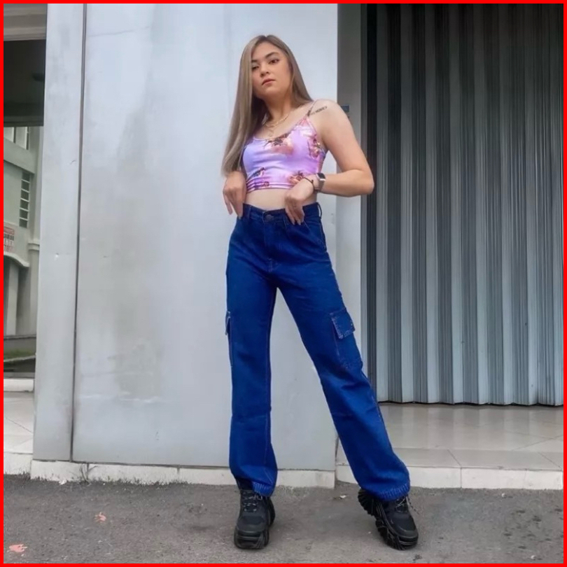 Celana Highwaist Cargo Jeans Wanita By Airos