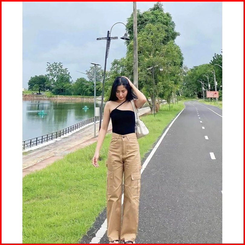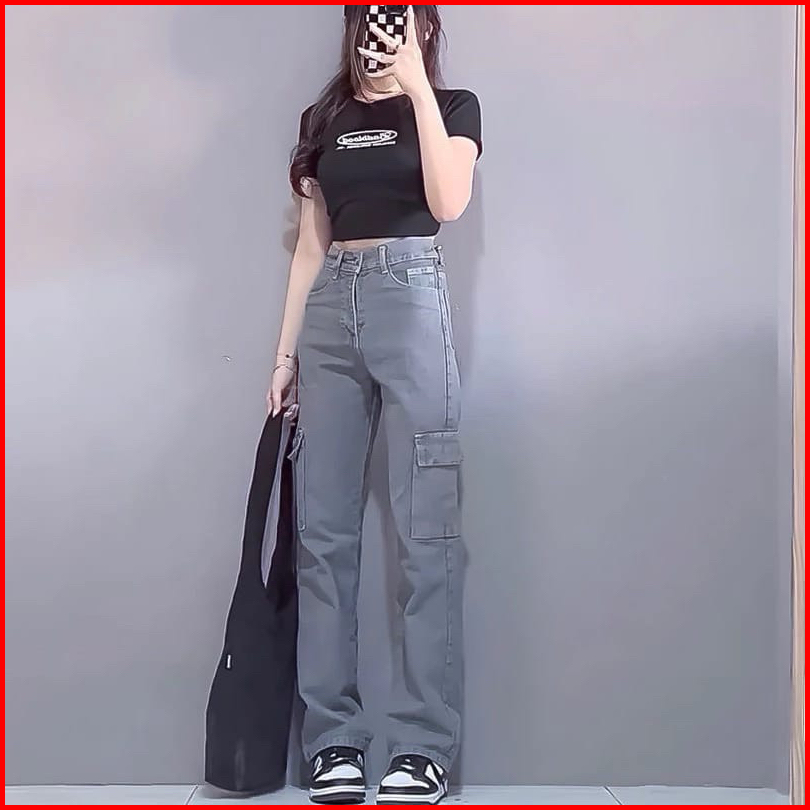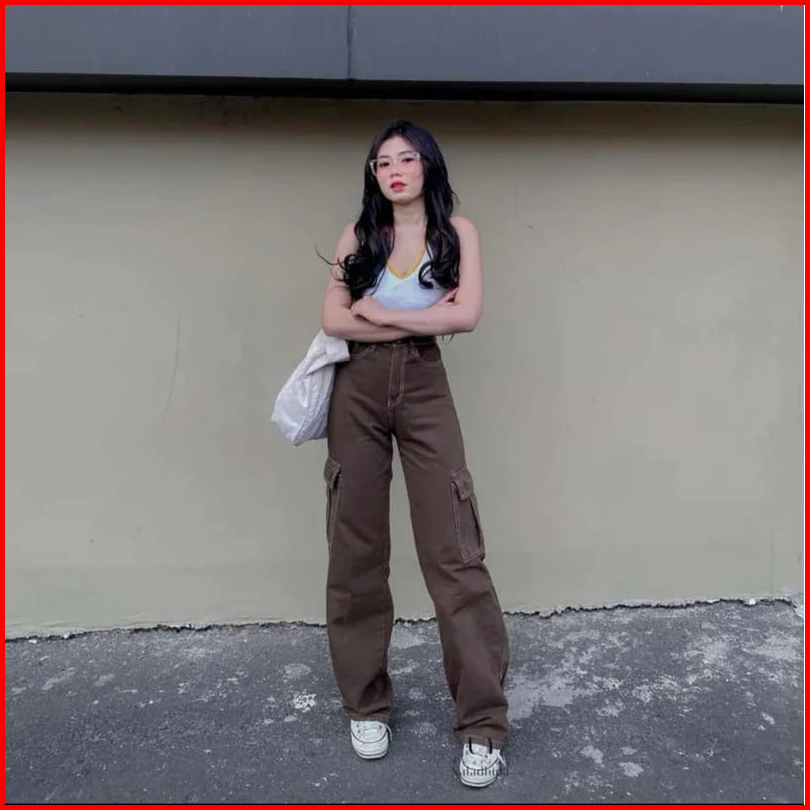 Celana Highwaist Cargo Loose Jeans Premium Cargo Jeans Abu