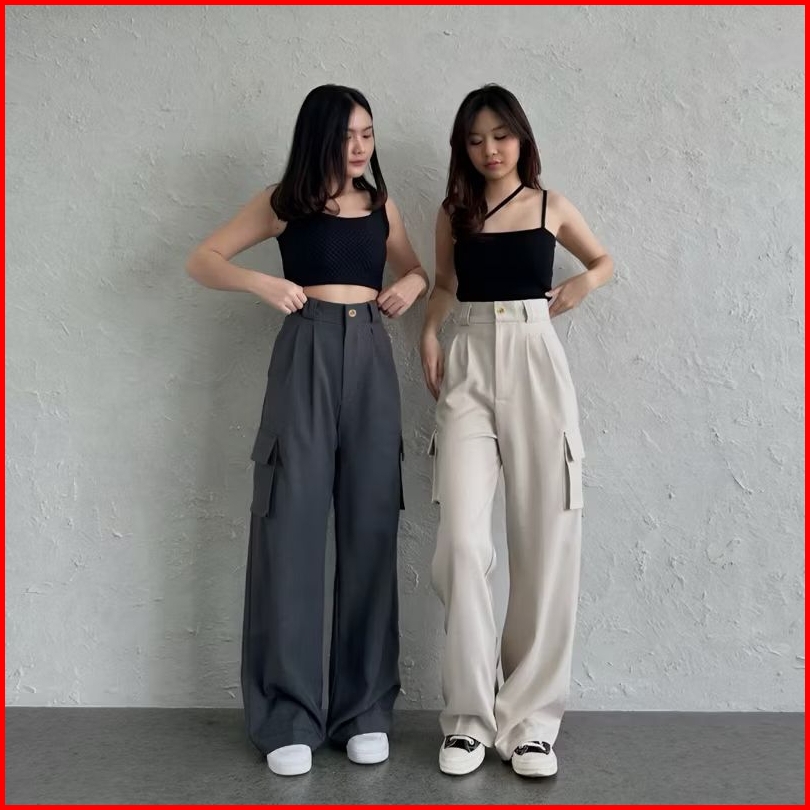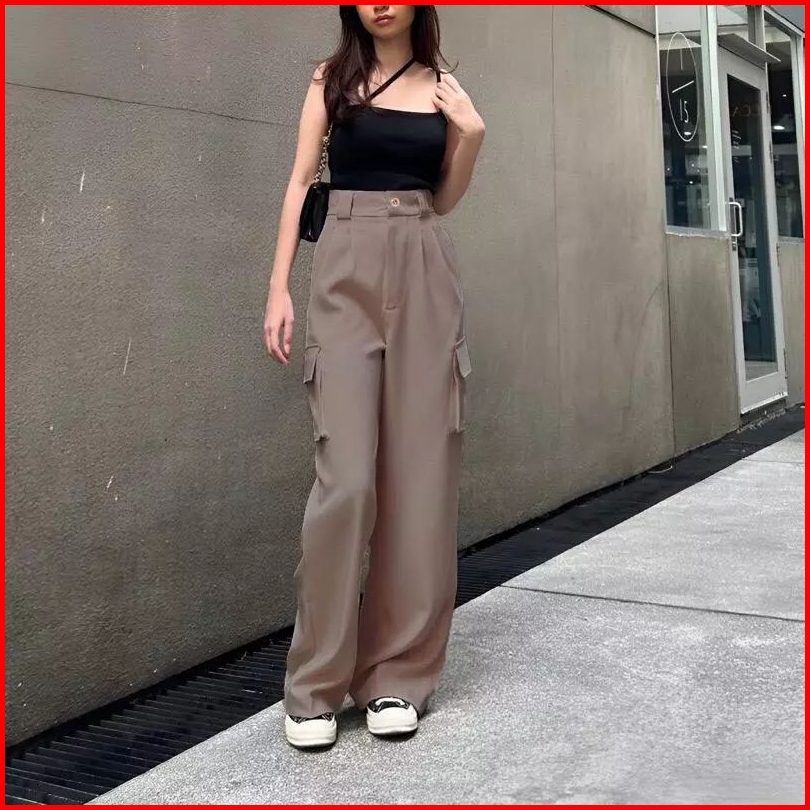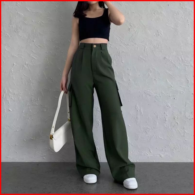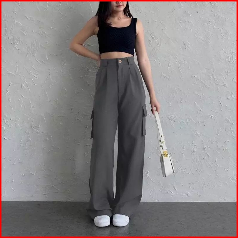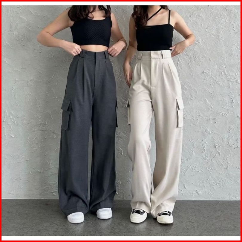 Celana Cargo Wanita Panjang Highwaist Loose Pants Wanita Korean Style Standar Jumbo