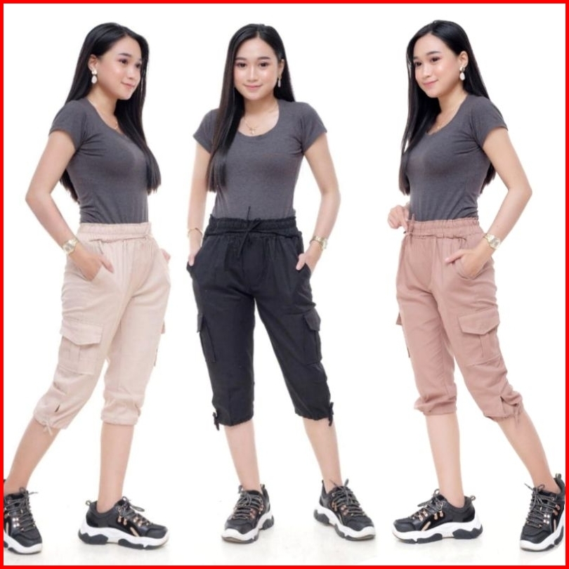 Celana Wanita Qiana Pants Cargo Premium M L Xl American Drill Celana Wanita