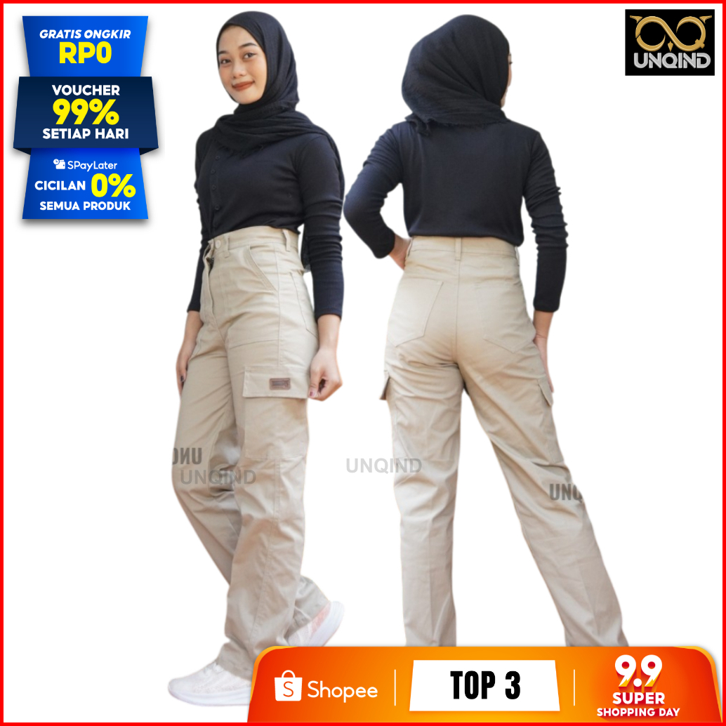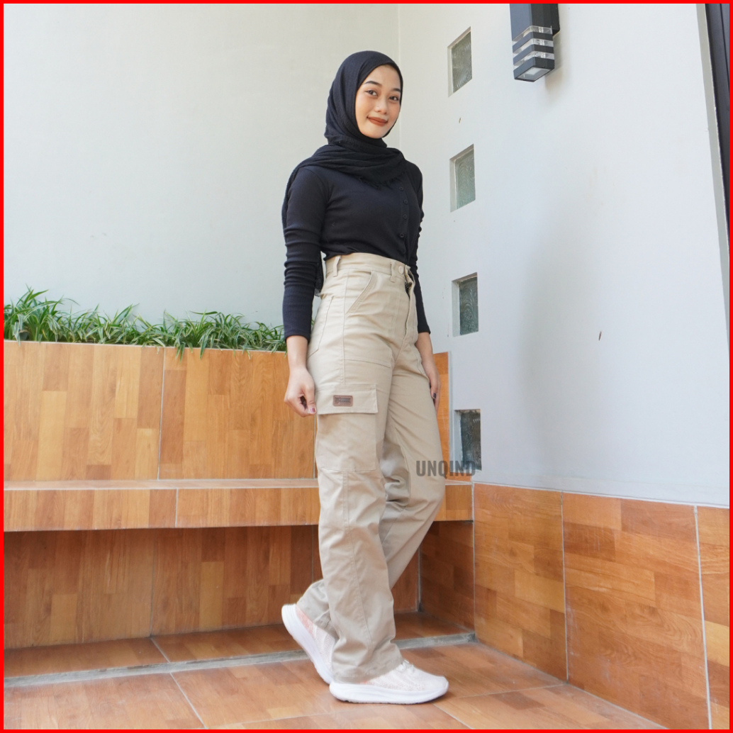 Unqind - Celana Cargo Wanita Highwaist Super Premium Satin Korean Style