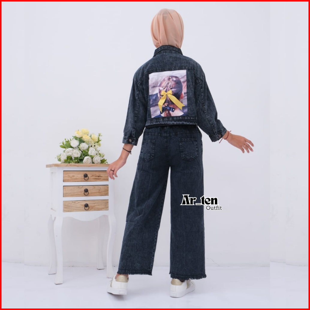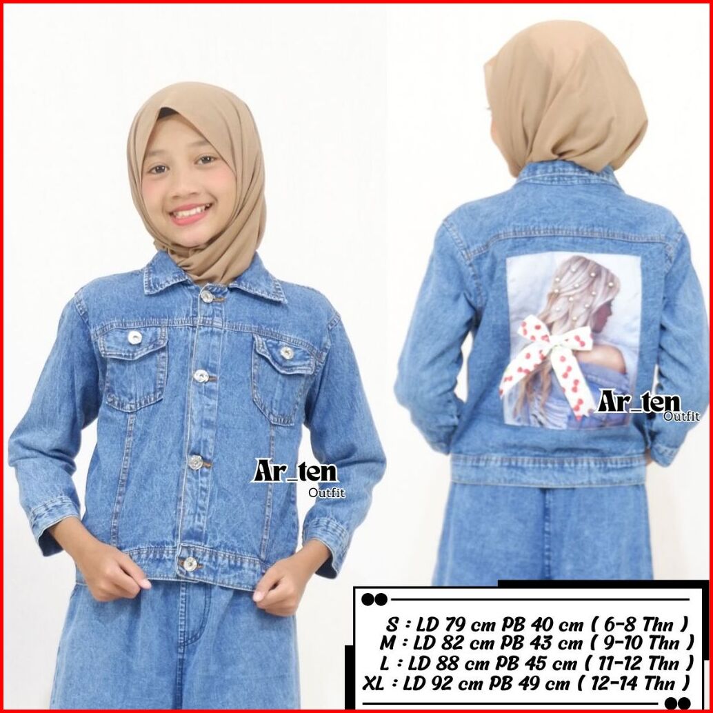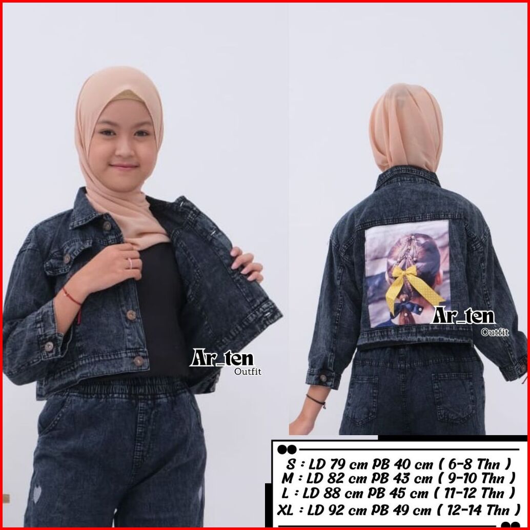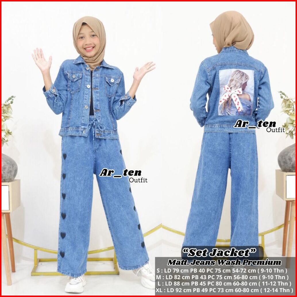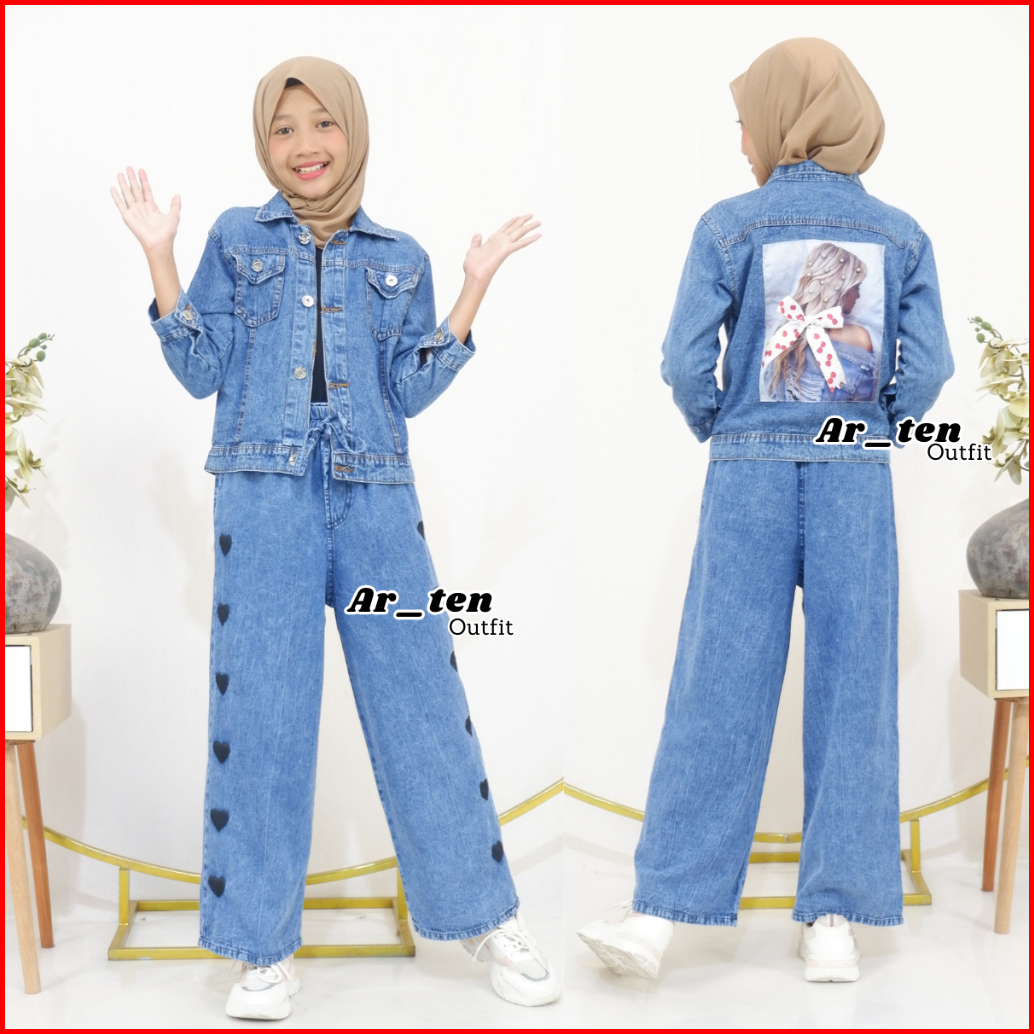 Setelan Jaket Jeans Anak Perempuan 6-14 Tahun Setelan Jaket Anak Perempuan Mix Celana Kolut Love Setelan Jaket Anak