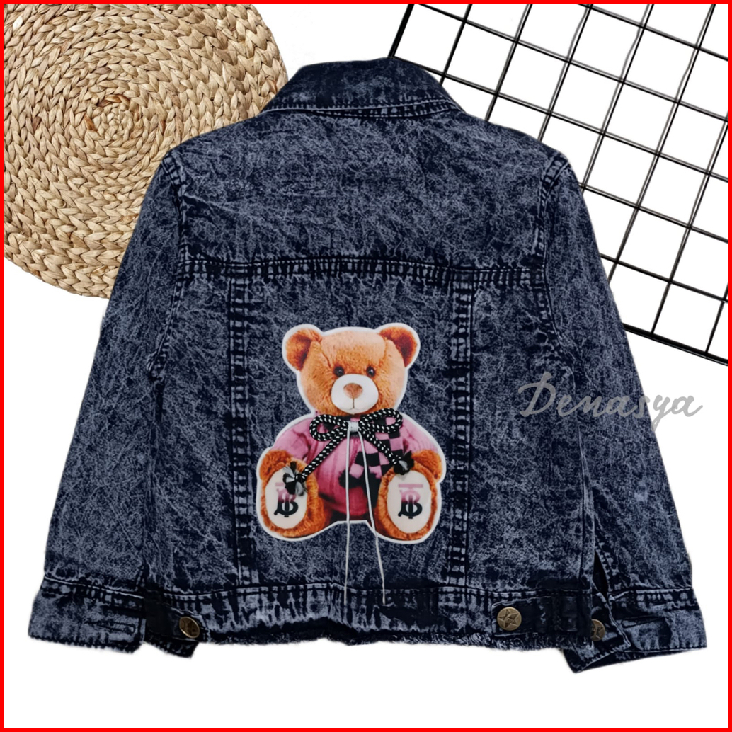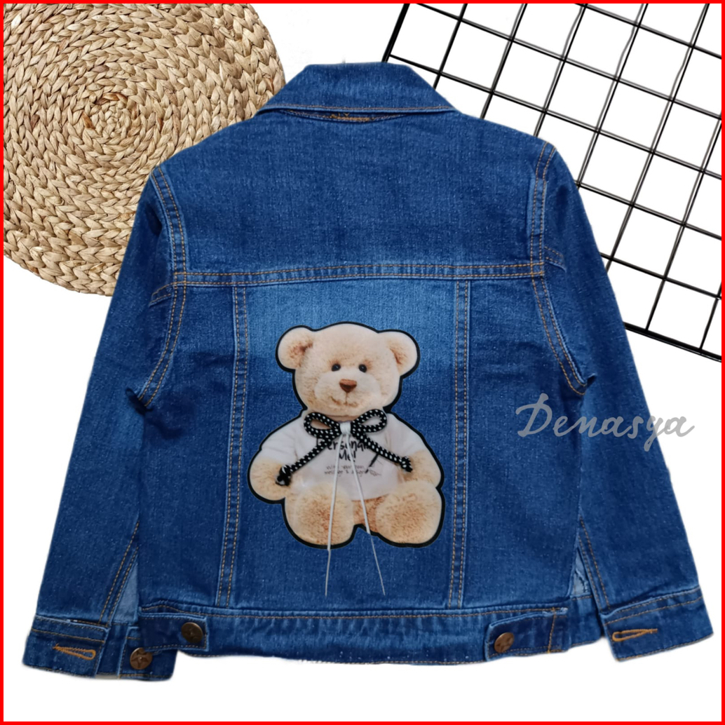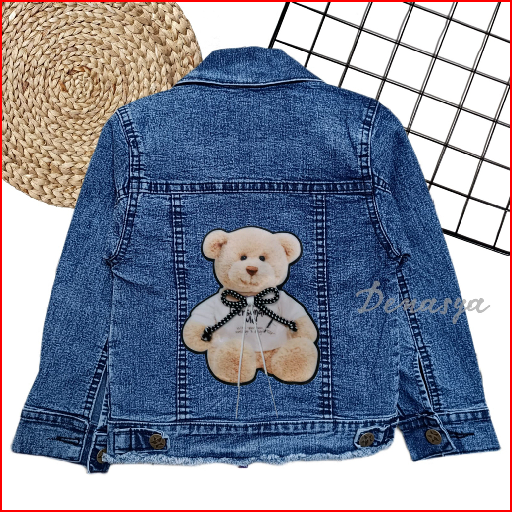 Jaket Anak Perempuan Jaket Jeans Anak Motif Beruang Tali 3d Terbaru Jaket Jeans Snowblue Snowblack Anak 1-10 Tahun
