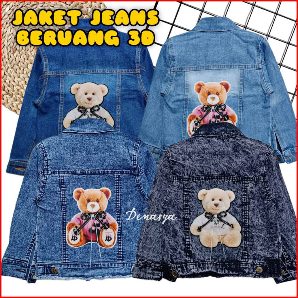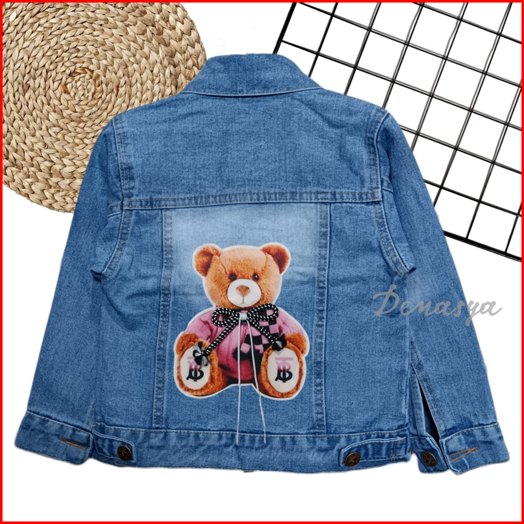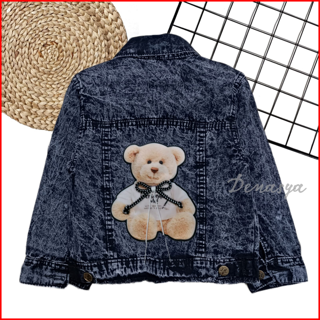 Jaket Anak Perempuan Jaket Jeans Anak Motif Beruang Tali 3d Terbaru Jaket Jeans Snowblue Snowblack Anak 1-10 Tahun