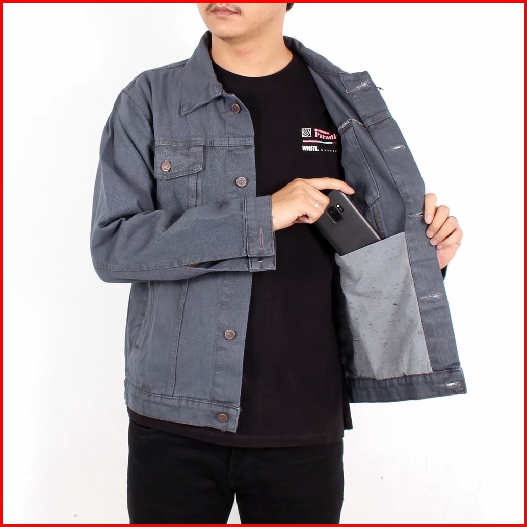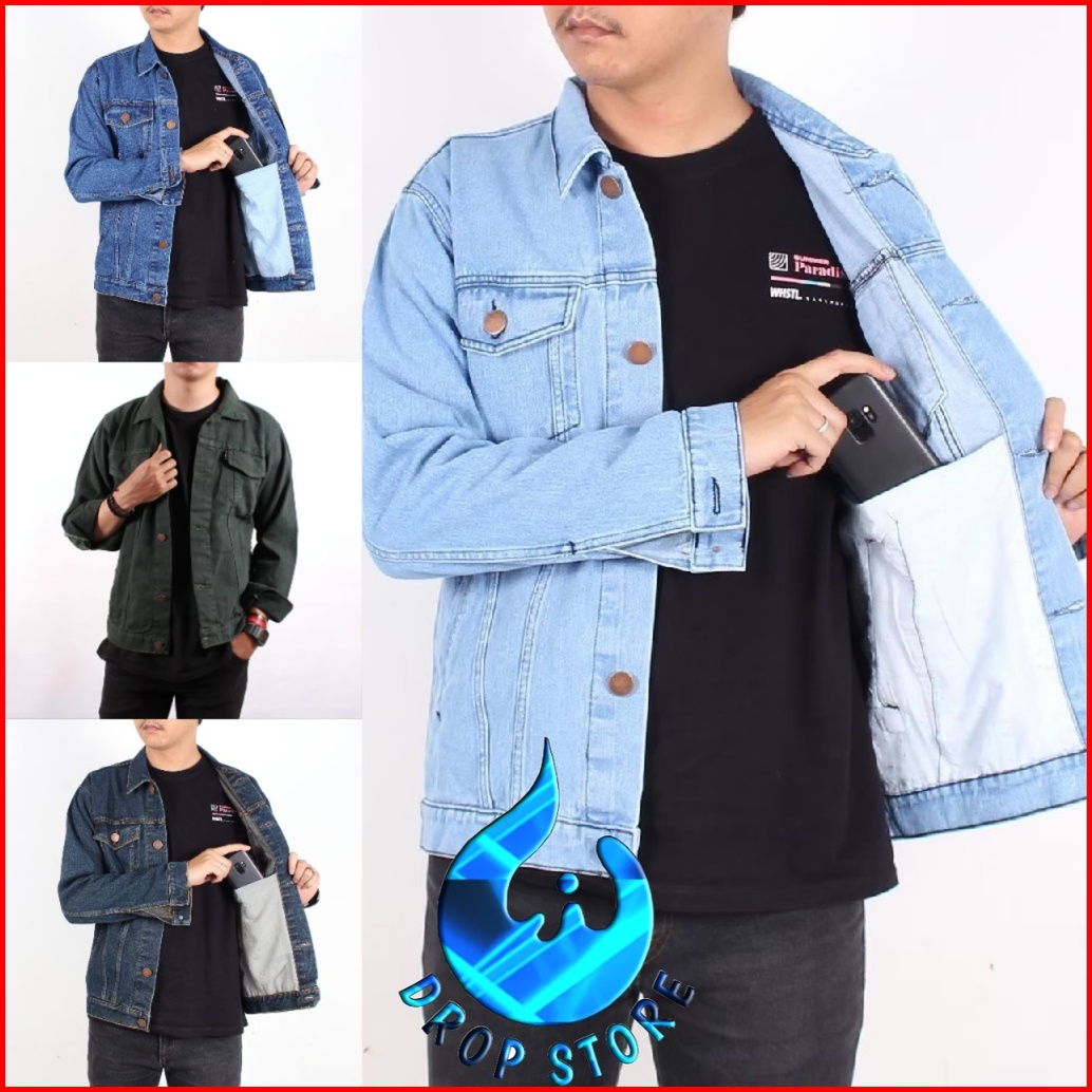 Dropstore Jaket Jeans Pria Size M L Xl Xxl Original