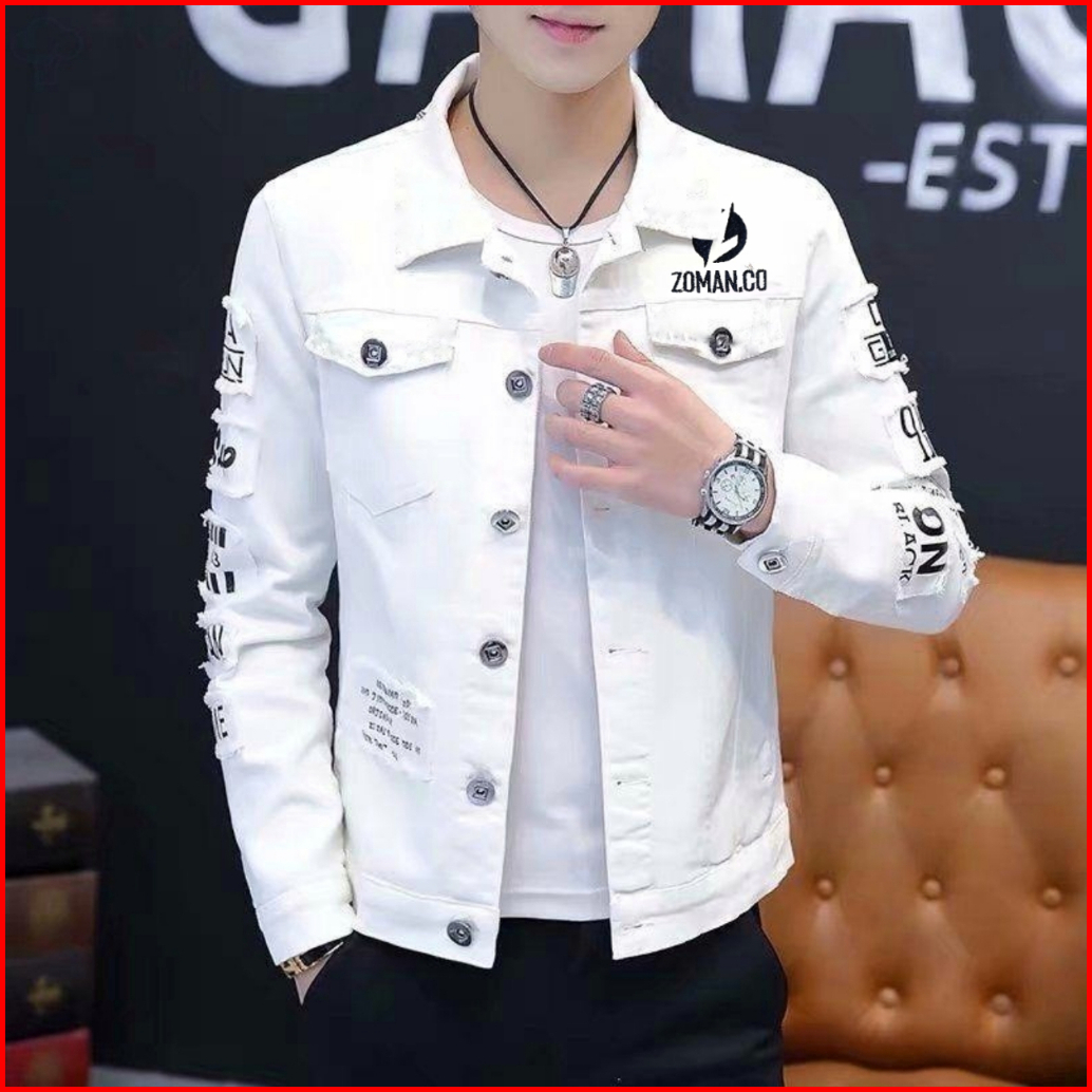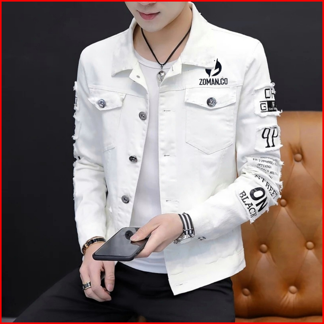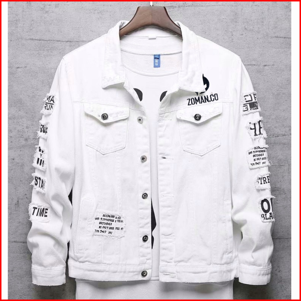 Best Seller 2024 Jaket Jeans Denim Putih Motif Full Bordir