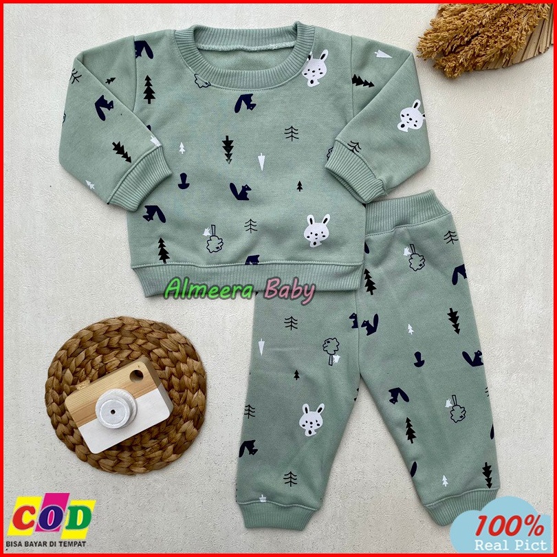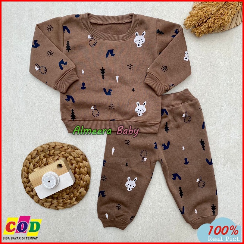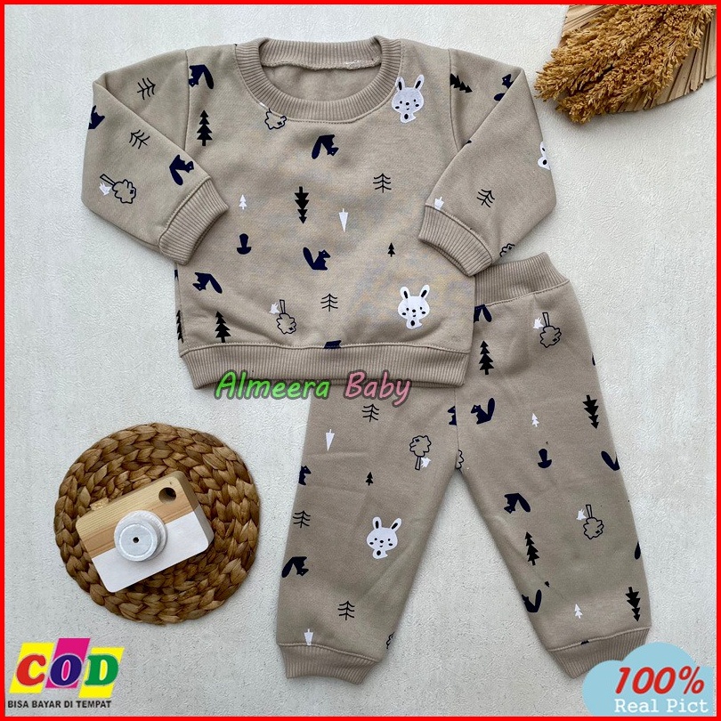 Setelan Sweater Bayi Celana Jogger Bayi Usia 3-12 Bulan Motif Rabbit Almeera Baby And Kids
