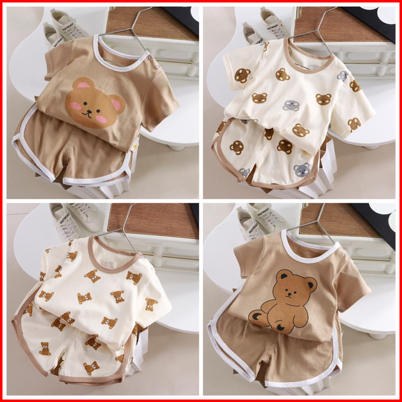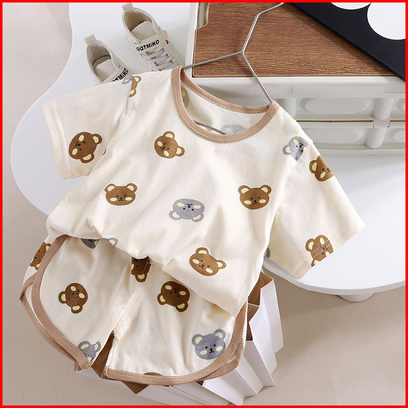 Junecollections Baju Jumper Pendek Kaos Celana Baju Anak Setelan Lengan Pendek Baju Santai Anak Baju Sehari-hari Bahan K