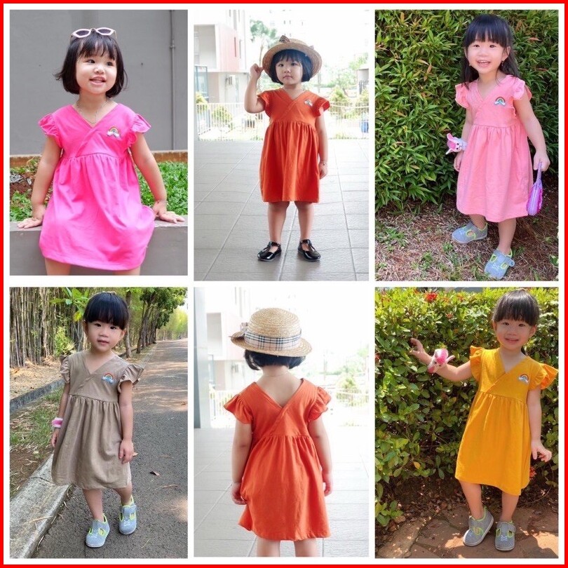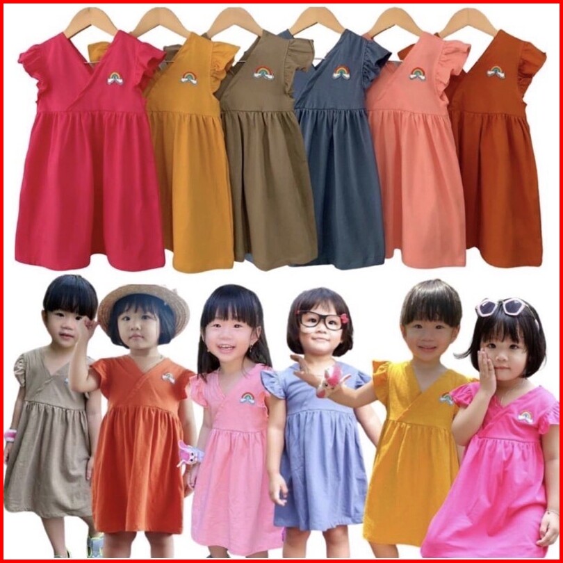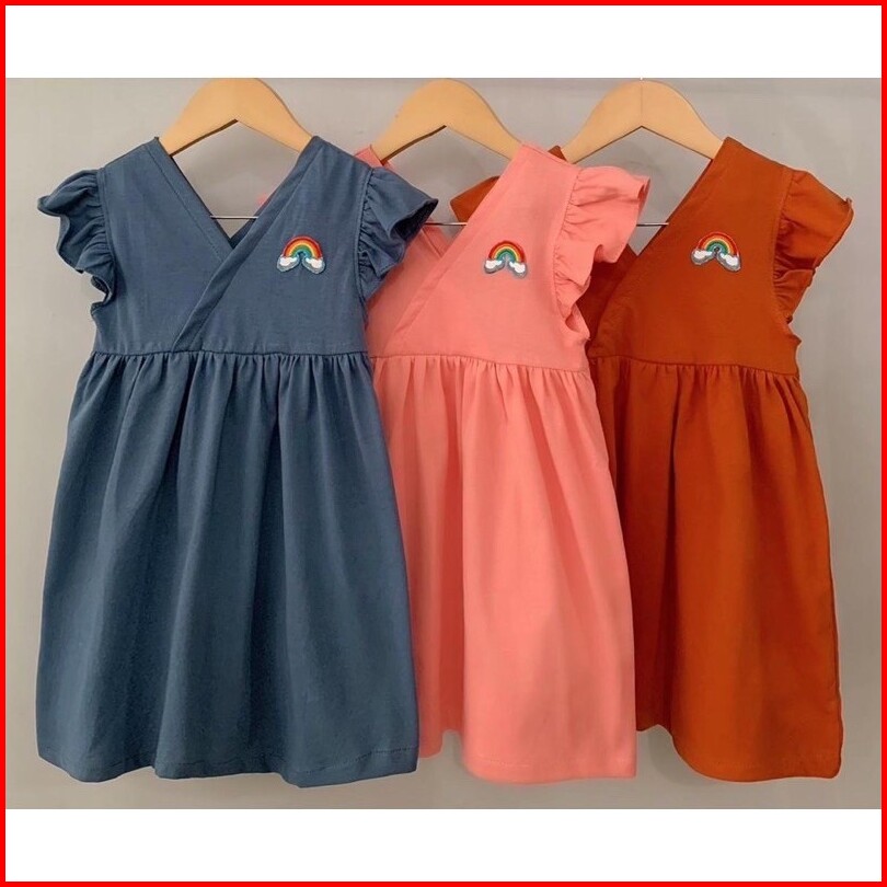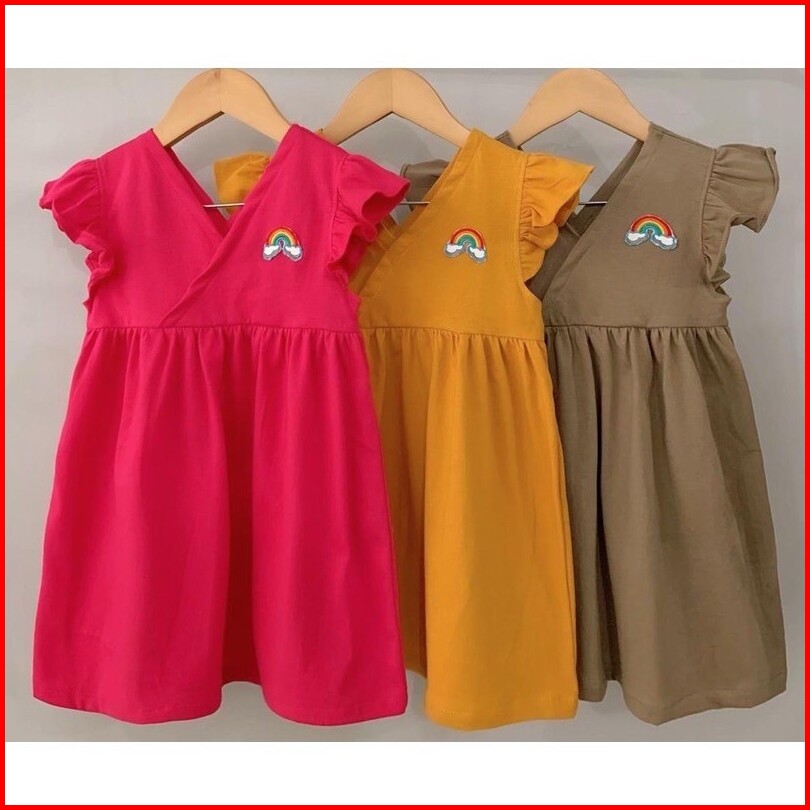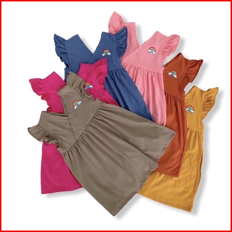 Dress Pelangi Daster Anak Lucu Bordir Pelangi Bahan Adem 1-5th