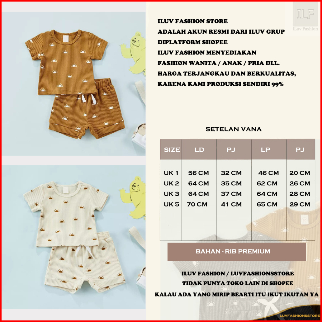 Il - Set Anak Vana Rib Motif Printing Setelan Anak Unisex Lucu Terbaru