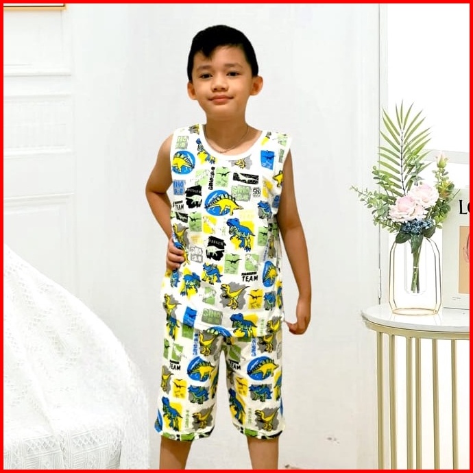 Setelan Anak Dino -baju Anak 1-12tahun Malvin- Singlet Anak Laki-baju Anak Laki-laki Setelan Anak Laki Laki