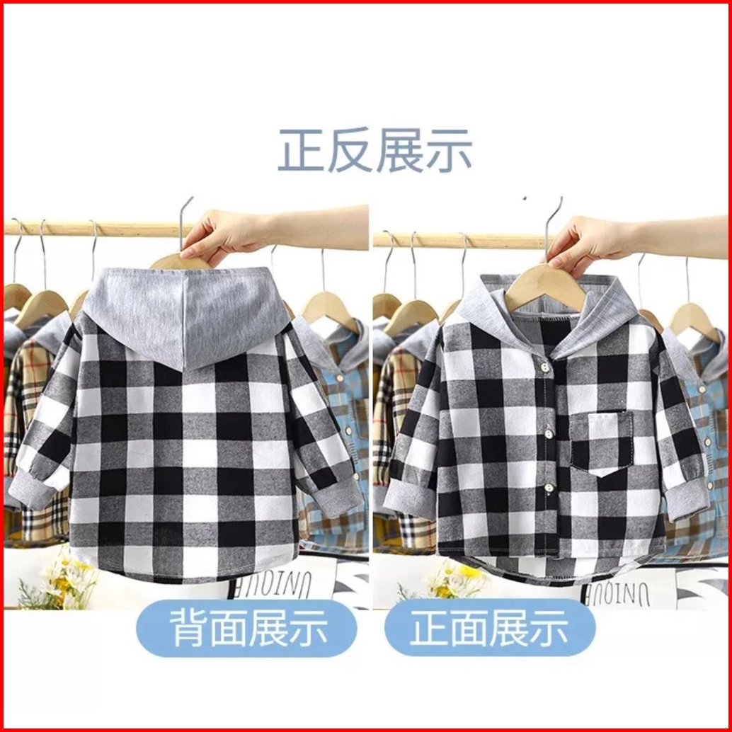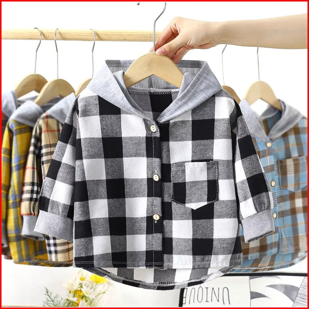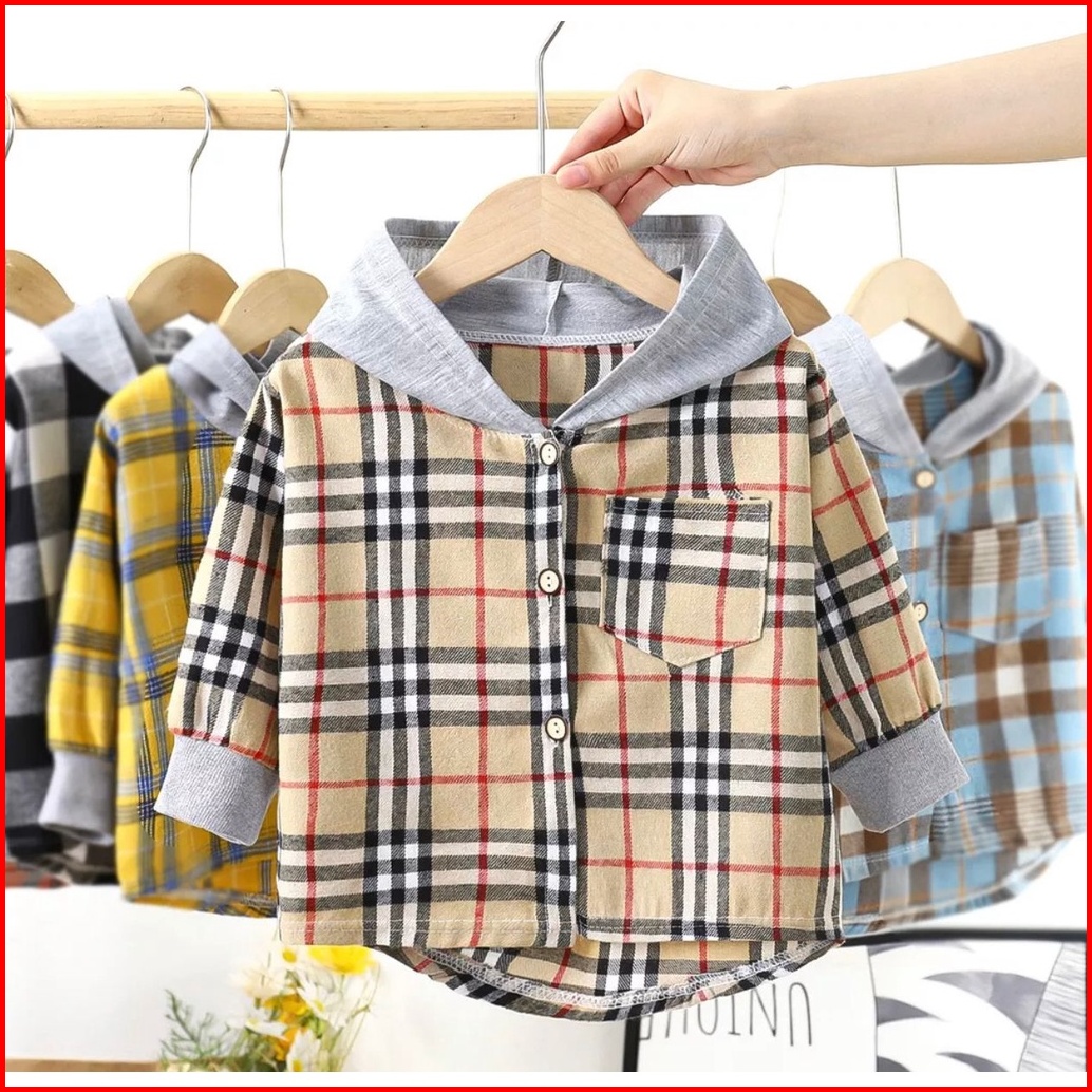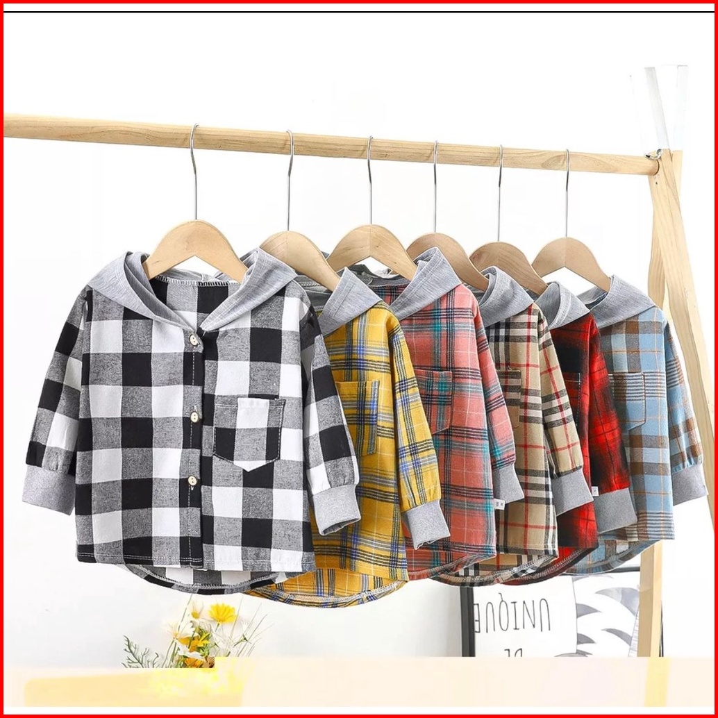 Toko1234. Atasan Kemeja Kemeja Flanel Anak Motif Kotak-kotak Impor Lengan Panjang Berkupluk Korea Anak Laki Laki.