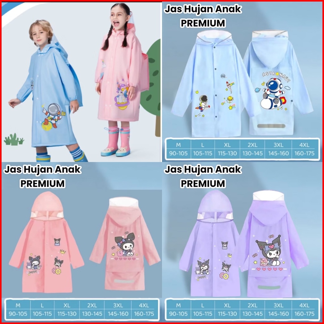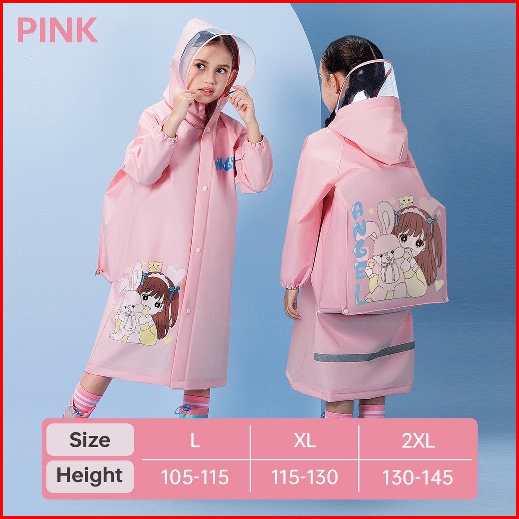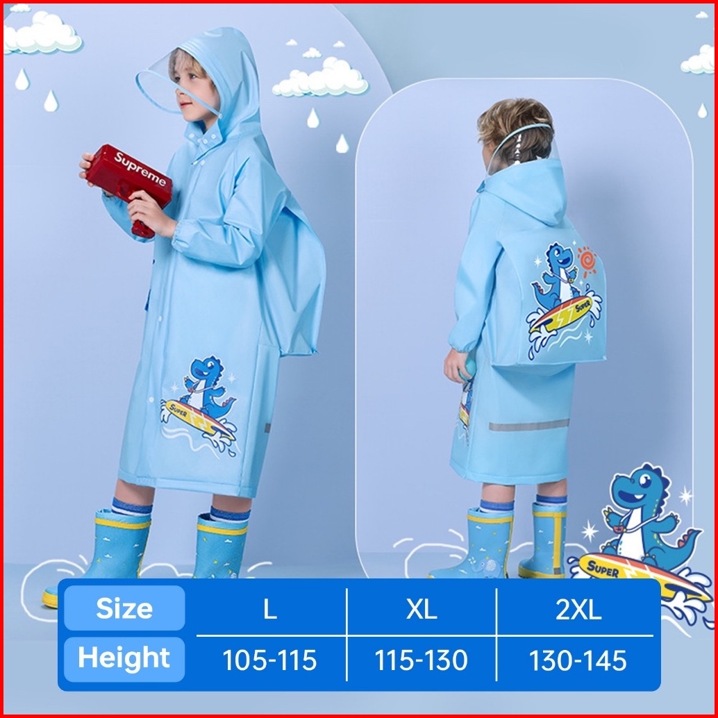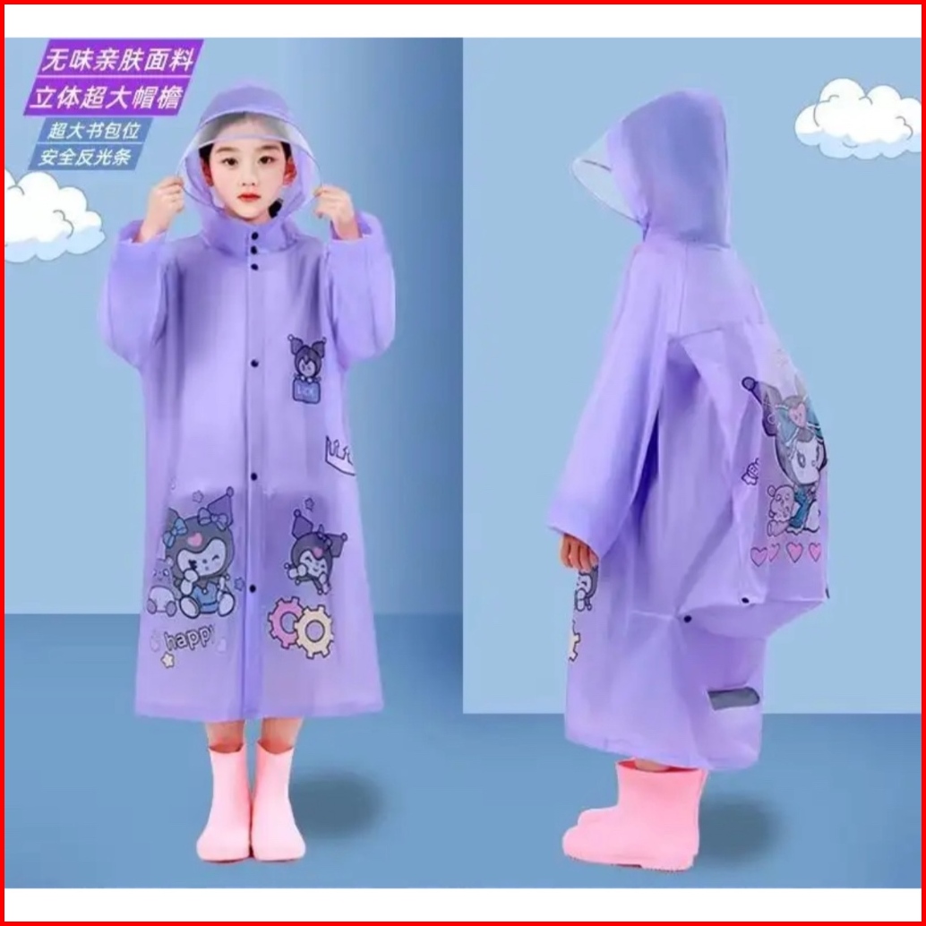 Jas Hujan Anak Dengan Penutup Tas Ransel Premium Terusan Hoodie Raincoat Bahan Tebal Cowo Cewe