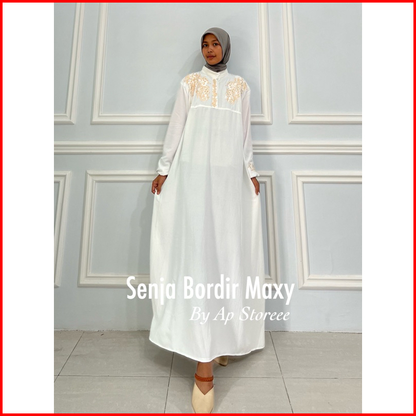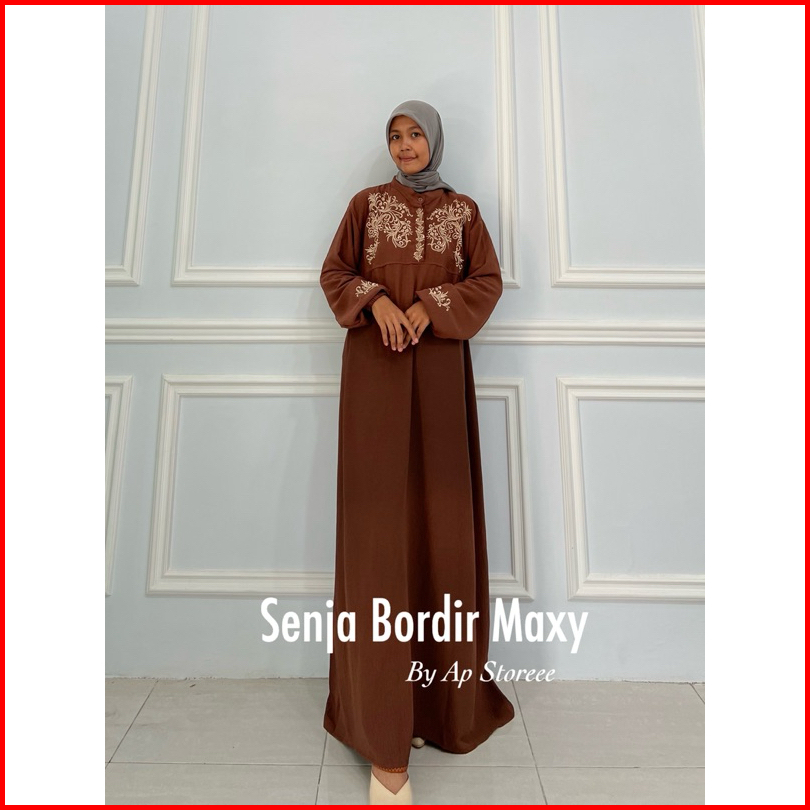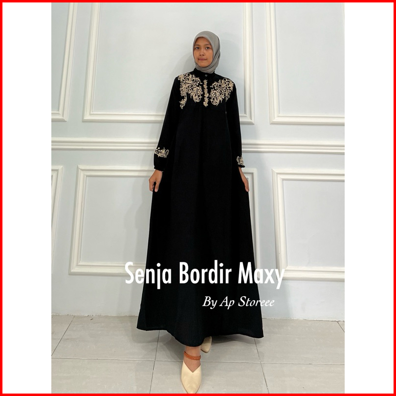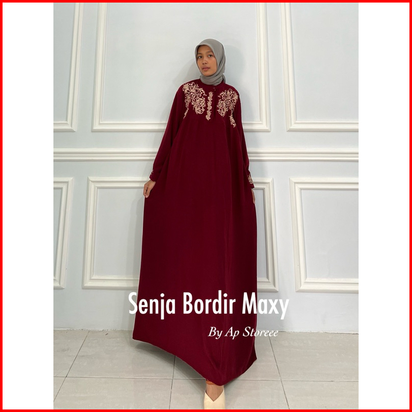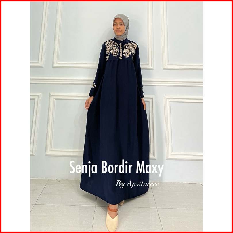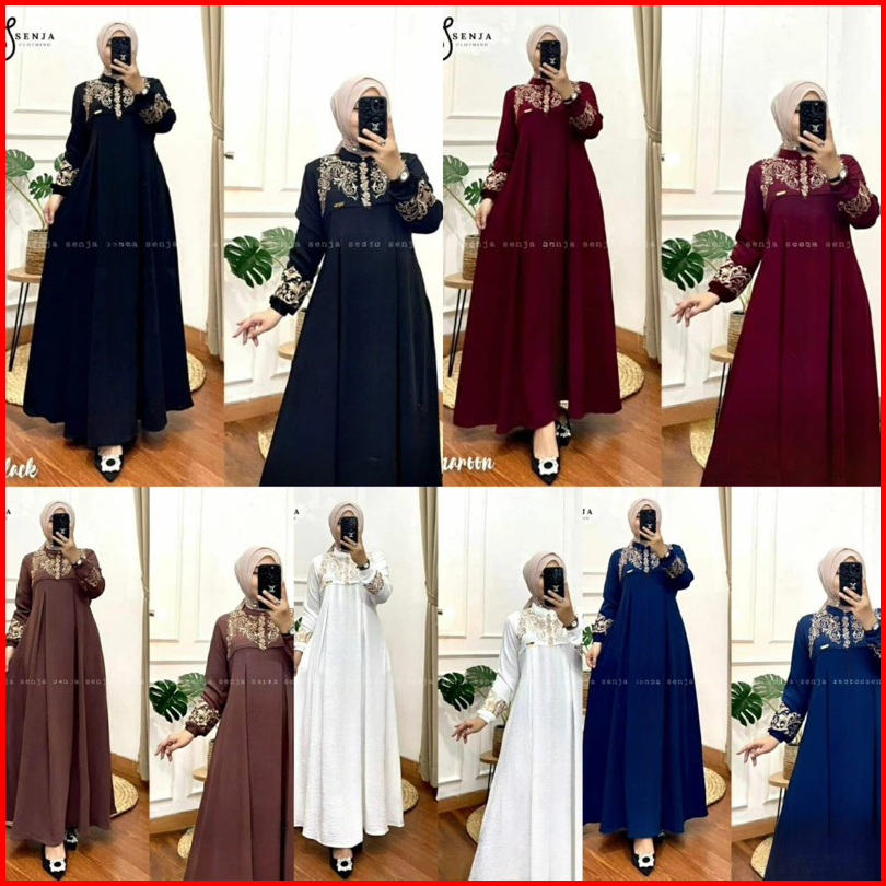 Senja Dress L Ld 110 Xxl Ld 130 Jumbo Bordir Maxy Cringkel Airflow Gamis Bordir Asli