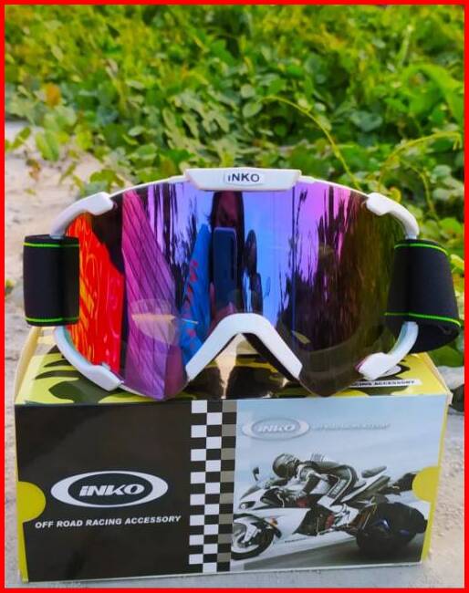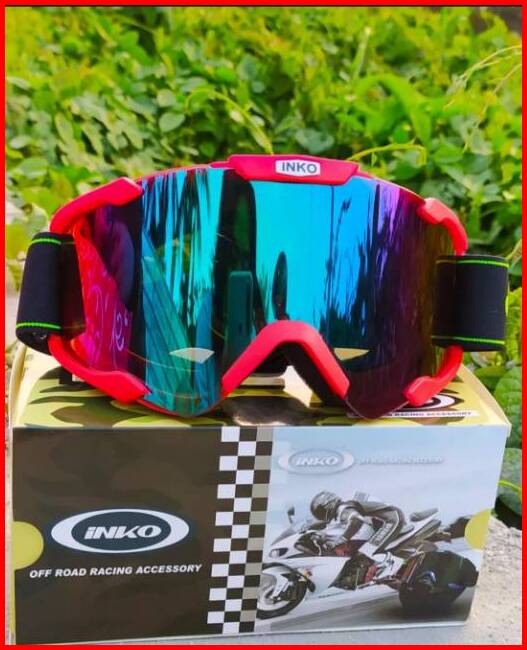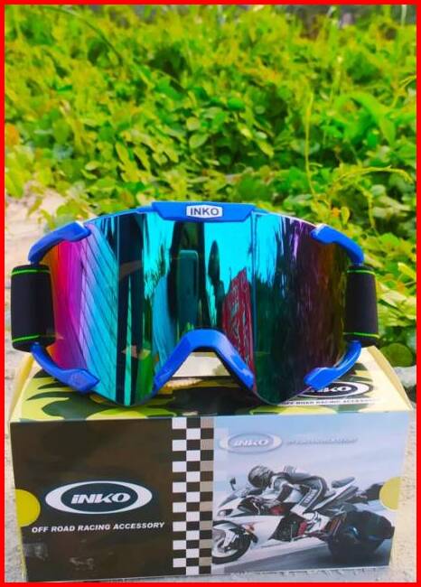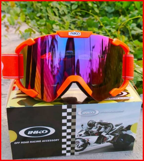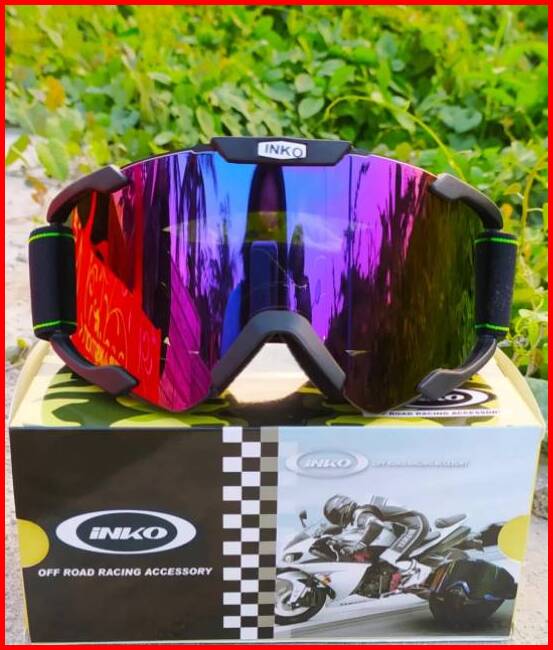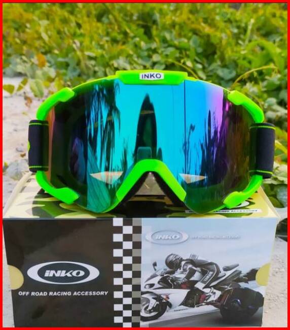 Kaca Mata Cross Goggle Inko Yellow Pelangi Rainbow Gogle Kross Kaca Mata Helm Cross Helm Motor Cross Kaca Helm Cross