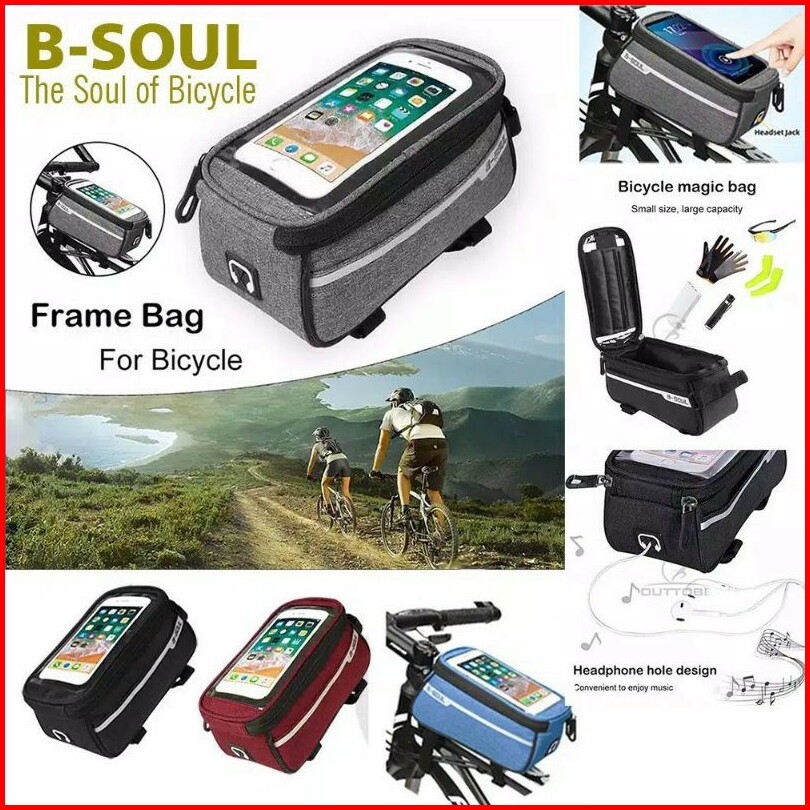 Big Sale.. Tas Frame Sepeda Depan Bmx Mtb Seli Lipat Anti Air Penyimpanan Hp Smartphone B-soul