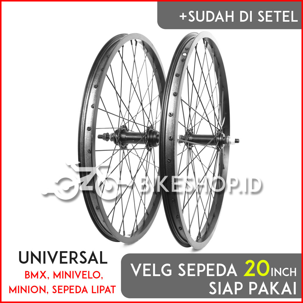 Wheelset Velg Sepeda Uk 20 Alloy Hitam Depan Belakang Rims Roda Siap Jadi High Quality